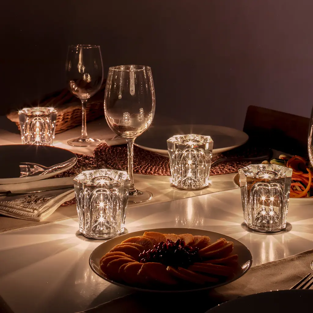 Experience the magic of light with our Xtal Portable Table Lamp. Portable and rechargeable, each piece is meticulously crafted to create a unique and ethereal display of light. Choose from three different models and bask in the beauty of an enchanting light show, indoors or out. Ideal for bringing a welcomed glow to patio dining tables, front steps, fireplace mantles and so much more. Highlights