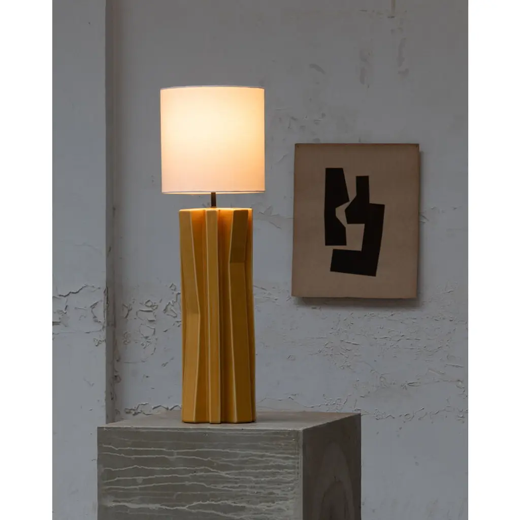 Serax’s Yucca table lamp brings together opposite materials and shapes in a delightfully distinctive way. The sculptural base, made from stoneware, is all clean lines and bold geometry, softened by a delicate textile shade in a subtle hue. The result is a perfectly balanced yet characterful table lamp that feels just as at home on a bedside table as it does in a cozy reading nook. Designer Bob Verhelst is known for his artistic approach to design. Each of his creations begins with hand-drawn pencil sketches that are transformed into full-scale cardboard prototypes. The Yucca lamp continues this unique design journey, inviting its warm and creative glow straight to your home.