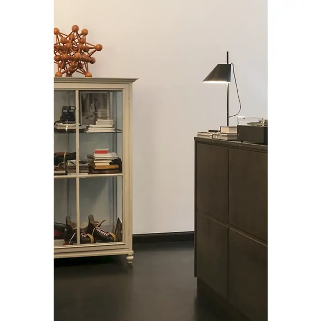 The Yuh LED Table Lamp by Louis Poulsen presents a memorable modern design that luxuriates in the simplicity of shape. Inspired by Danish and Italian design principles, GamFratesi, the renowned design duo optimized it to act as a focused task light accompanied by a splash of reflected radiance. Its efficient LED lamping is bright and bold, restrained and dispensed by the slender, pivoting shade for light distribution. The slender sculptural structure and expressive shade design counterpoint the luxurious materials, with the fixture’s name being the spoken sound of the word “You” creating a personal connection with anyone in its proximity.