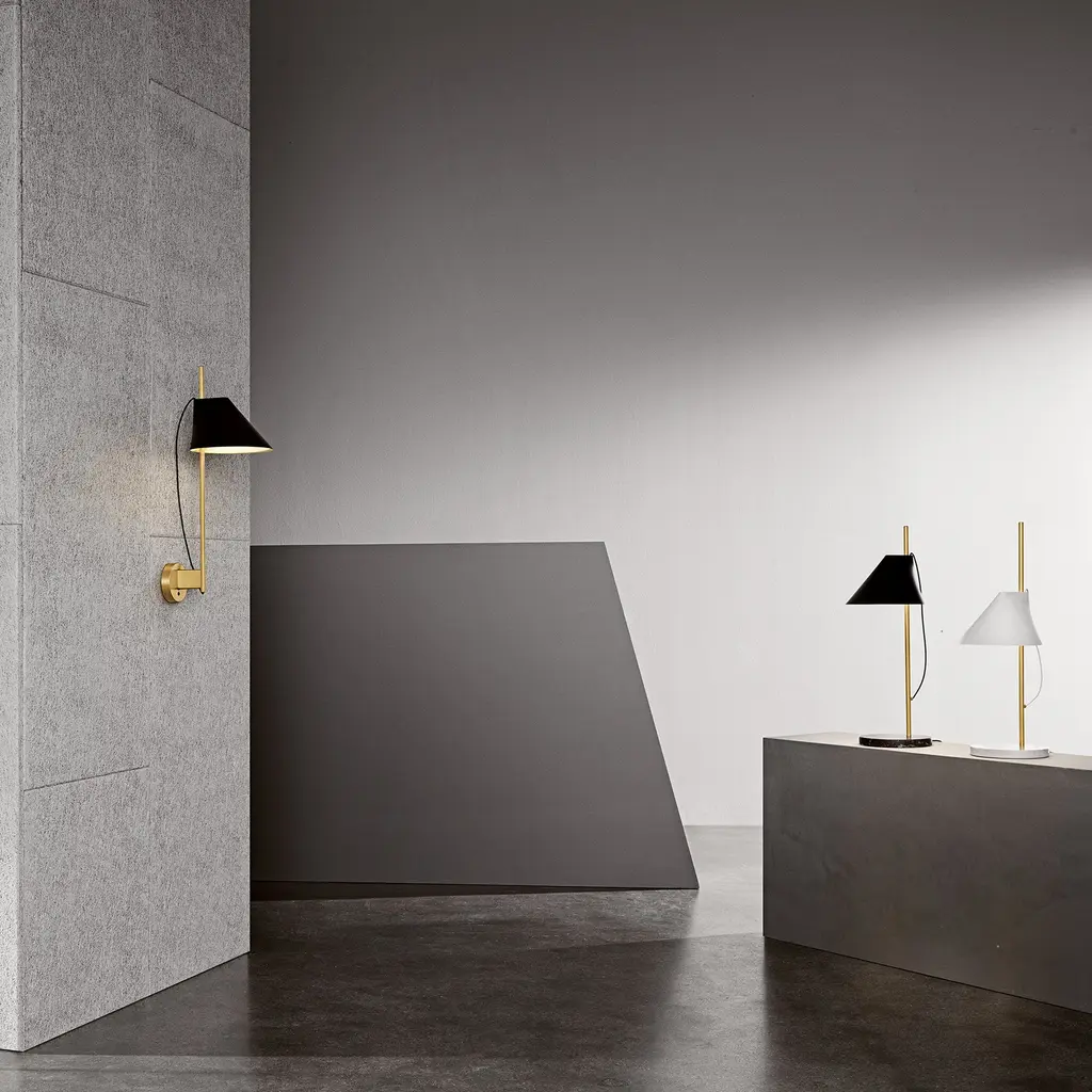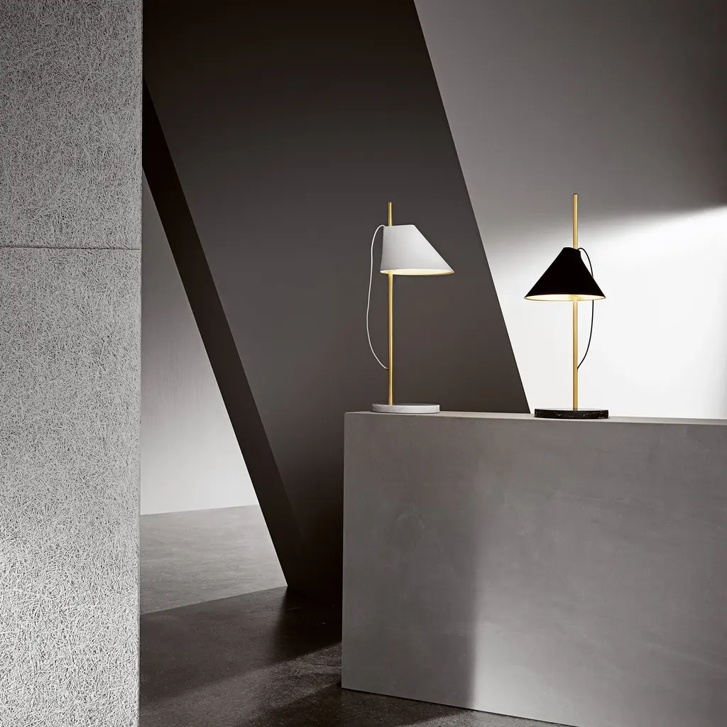 Louis Poulsen’s Yuh series adds a table version with compact utility and the option of marble- and brass-appointed models in addition to the understated solid back and white originals. Danish-Italian studio GamFratesi contrives a completely adjustable functionality, with glare-free LED downlight issuing from a metal shade that can be raised and lowered on its vertical stem as well as angled in the desired direction while a slim opening at the top also adds soft, ambient upward illumination.