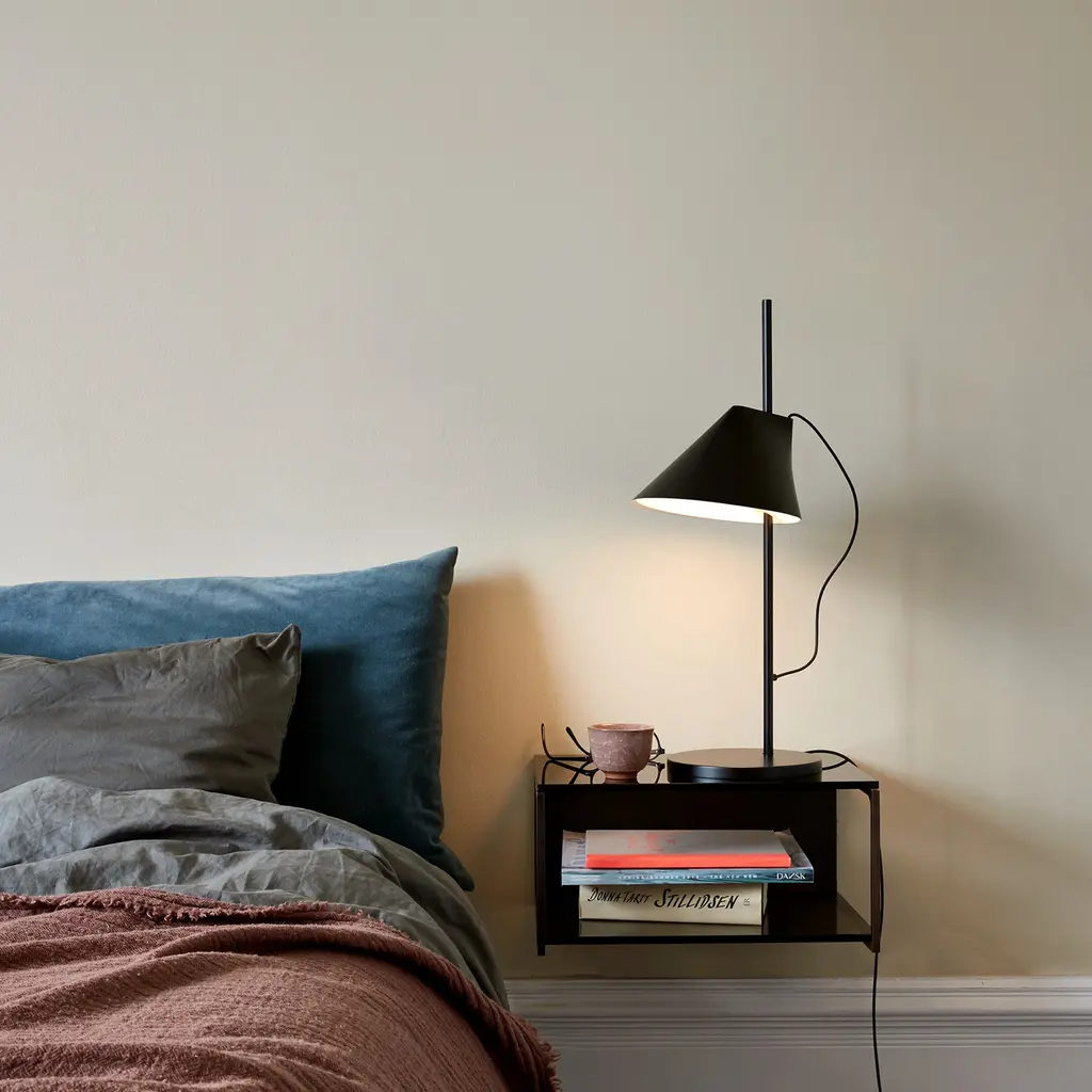 Louis Poulsen’s Yuh series adds a table version with compact utility and the option of marble- and brass-appointed models in addition to the understated solid back and white originals. Danish-Italian studio GamFratesi contrives a completely adjustable functionality, with glare-free LED downlight issuing from a metal shade that can be raised and lowered on its vertical stem as well as angled in the desired direction while a slim opening at the top also adds soft, ambient upward illumination.