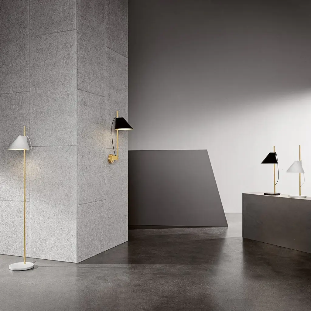 The Yuh Table Lamp provides direct glare-free downward directed light. A slim opening in the top of the shade provides soft, ambient upward illumination. The shade pivots, rotates, and slides on the vertical stem to optimize light distribution. A mechanical system provides great freedom of movement, so the light can always be set in the ideal position in the workspace, living room etc. Built-in LED technology provides high quality light with stepless dimming down to 15%. Timer function automatically turns off the light after a chosen duration of 4 or 8 hours, or can be set to stay permanently on. Memory function allows light level to be set for each time the fixture is connected to main power. A button at the top of the tube acts as the switch and dimmer. The Danish-Italian design duo GamFratesi designed Yuh for Louis Poulsen in 2017. Initially launched in black and white, the family was extended with editions featuring brass and marble. One of the essential features of the lamp is to be personal. The light is flexible and taking up little space. It can rotate, rise and lower, illuminating and creating ambience in the desired area. The form of the shade is determined geometrically from the movement that it performs on the stem. A minimalistic appearance created from a circular shape at the bottom to a linear opening at the top of the shade. The name Yuh is the phonetic form of ‘you', the letters representing the sound made by the voice to say ‘you'.