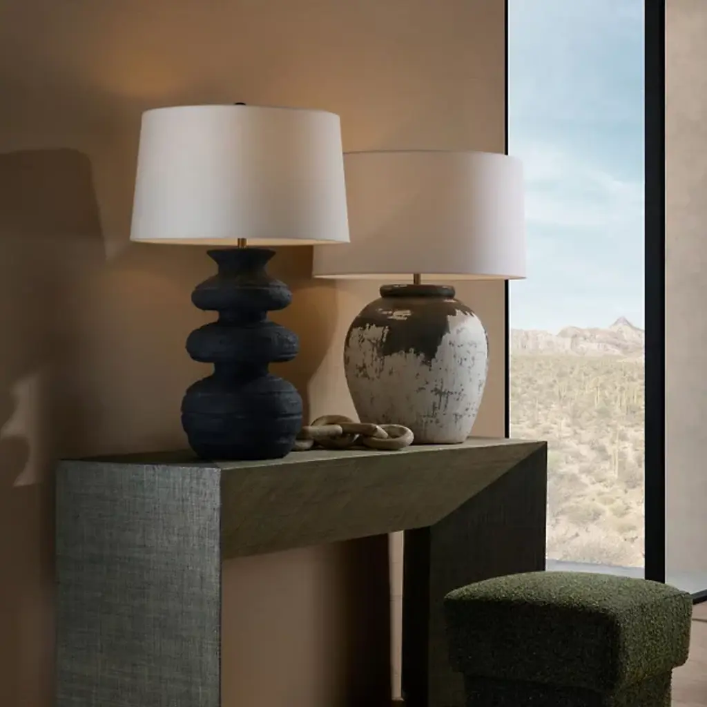 The Yukon Table Lamp from Arteriors is a versatile piece that blends quality materials with a transitional aesthetic. Crafted from durable steel, this table lamp has a rounded appearance, adding a touch of elegance to your space. The linen shade complements the steel composition, softening the LED light. Illuminate your space with ease using the rotary on/off switch, providing convenience. Effortlessly [lace this lamp on your favorite table and bring a sense of completion to your interior décor.