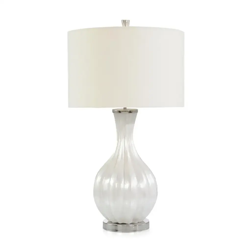 The Yume Lamp features a curvaceous, ruffled aluminum body with a gorgeous teardrop shape. With a lustrous enamel finish, the body takes on a gorgeous white sheen that beautifully complements the rounded brass base and neck accent in a nickel finish. The finial, also with a nickel finish, displays a lovely tapered shape that completes the look of this innovative turnkey lamp.