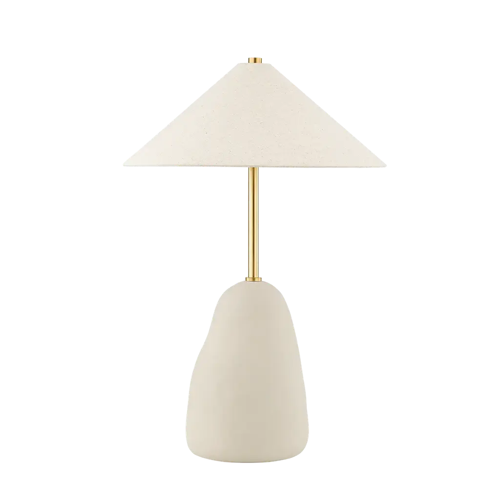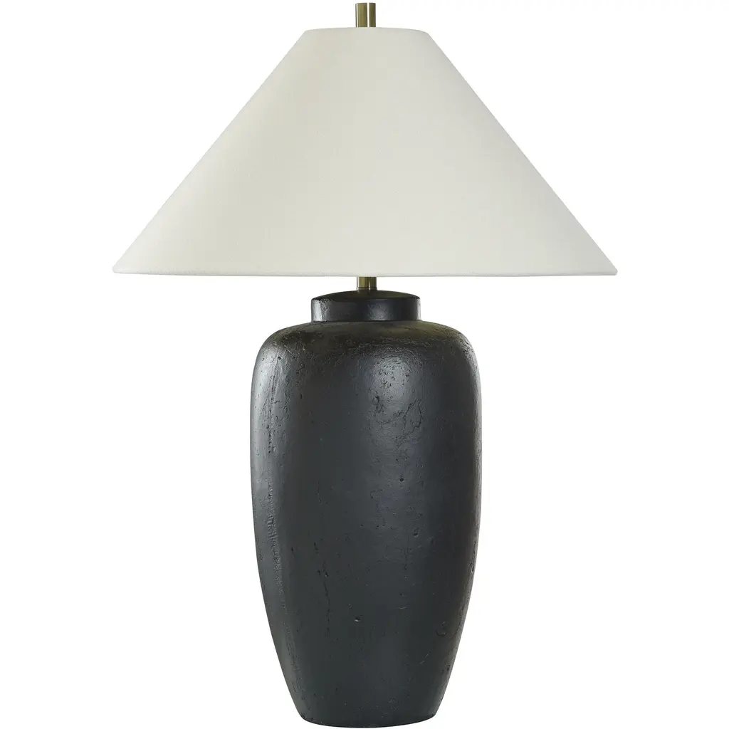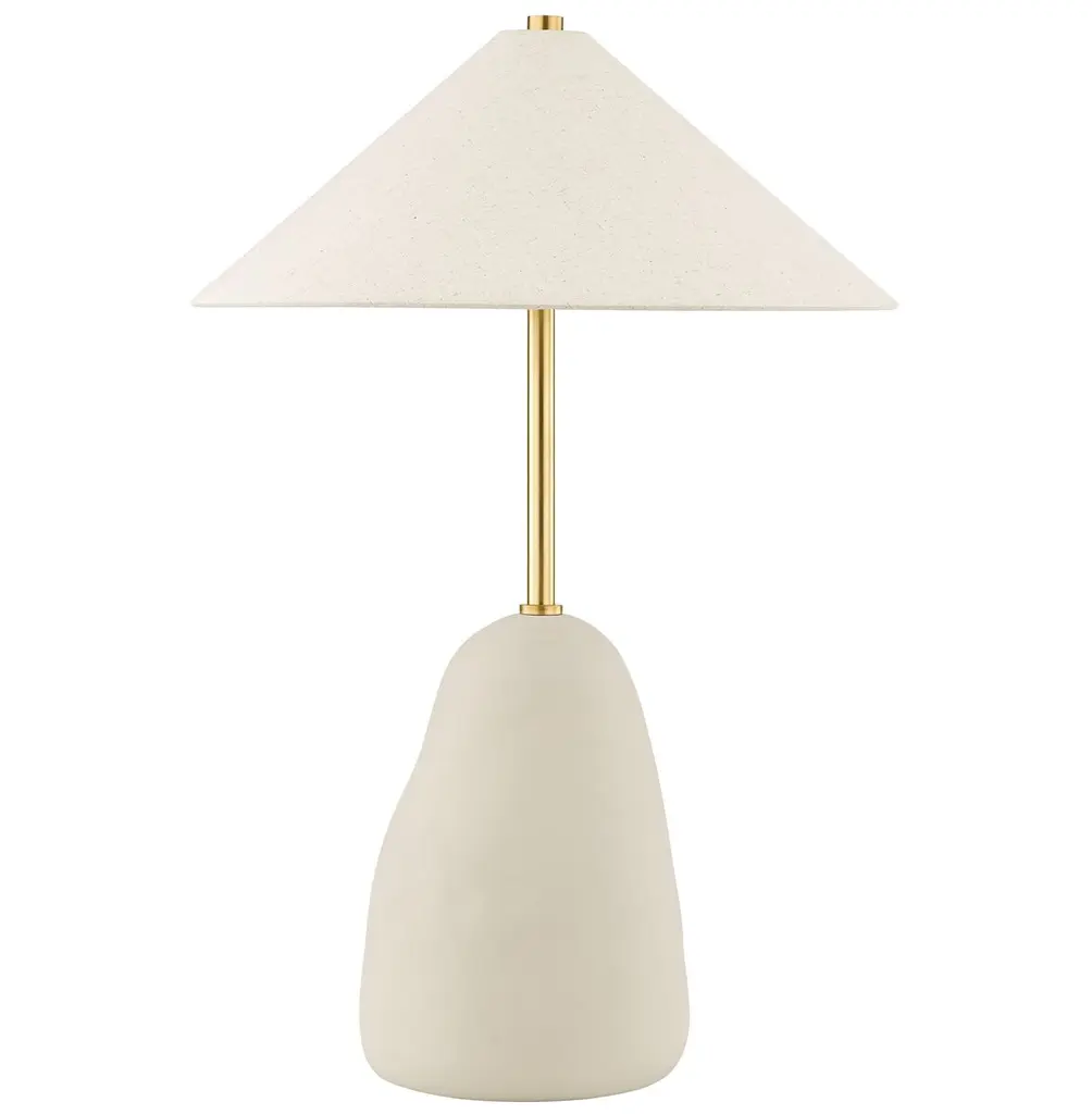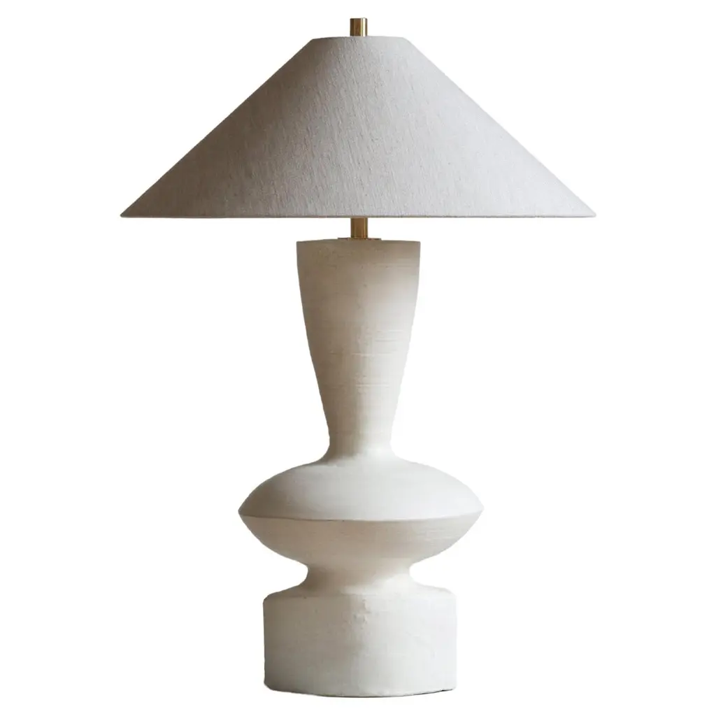 The Zadeh lamp's artful stacking of shapes creates a striking visual impact. A reactive ceramic glaze gives the base its matte texture and rich tonal variance, while the interplay between a large central sphere and delicate trumpeted forms creates an unexpected tension. A simple conical linen shade tops off the sculptural assembly.*Due to the one-of-a-kind nature of the medium, exact colors and patterns may vary slightly from the image shown.
