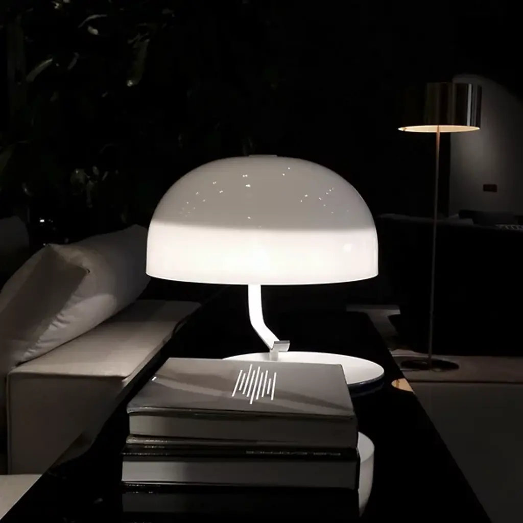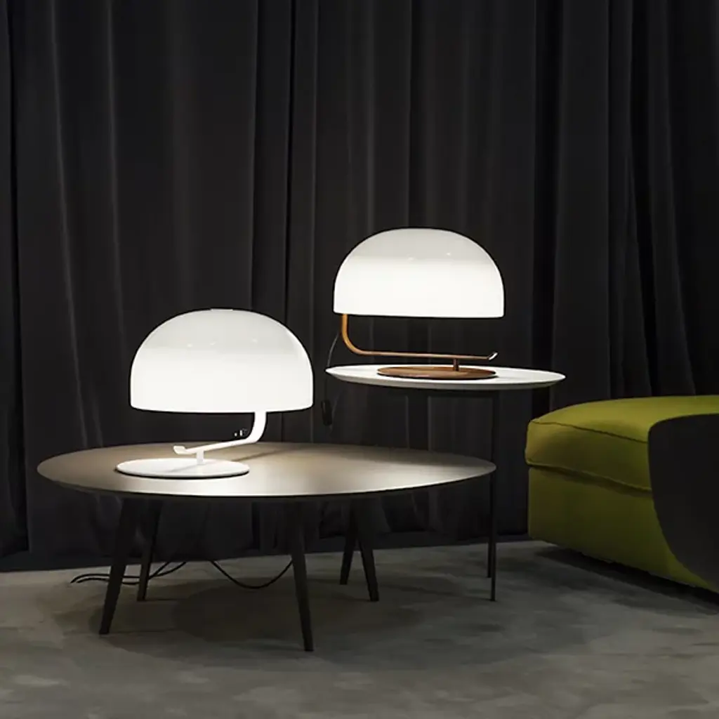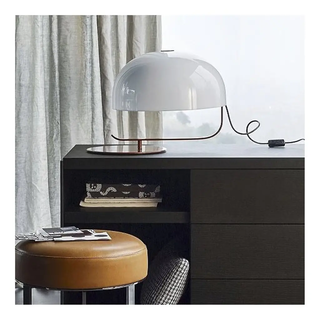 Entirely unique in form, especially for its intended purpose, the Oluce Zanuso 275 Table Lamp is a stunning piece of sculptural and functional light. Between the dramatic curve of the stem, the deep dome shade and the subtle gradation of bright white light, the Zanuso is as much a conversational piece as it is a table light, and will instantly add sophistication to any room it is placed in.