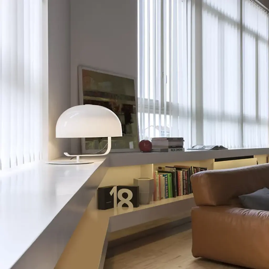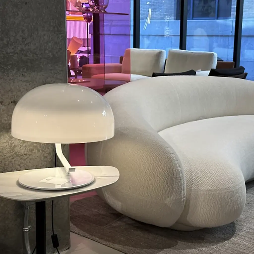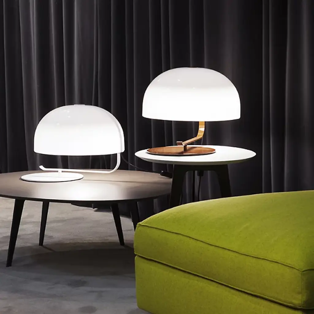 Entirely unique in form, especially for its intended purpose, the Oluce Zanuso 275 Table Lamp is a stunning piece of sculptural and functional light. Between the dramatic curve of the stem, the deep dome shade and the subtle gradation of bright white light, the Zanuso is as much a conversational piece as it is a table light, and will instantly add sophistication to any room it is placed in.