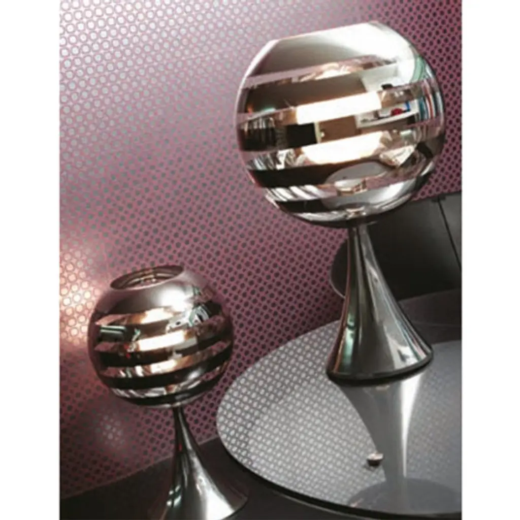 The Zebra table lamp creates a stylishly alluring ambiance in any space with its luxurious good looks. This innovative and chic table lamp is made of high quality polycarbonate and silver metallization, allowing for a unique illuminating experience.Small: 12"w x 19"h Small Base: 6.5"w x 8.25"h Medium: 15.75"w x 24.5"h Medium Base: 12"w x 12"h