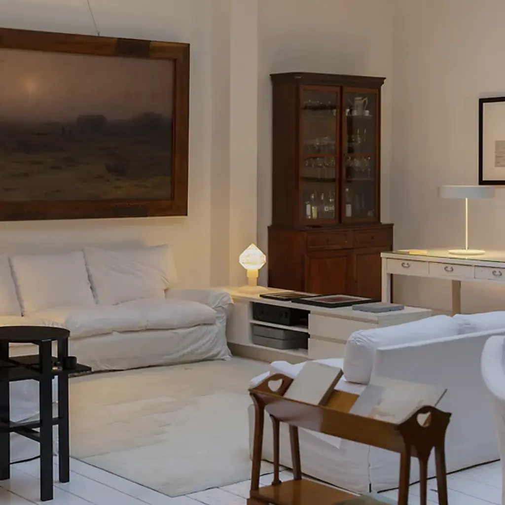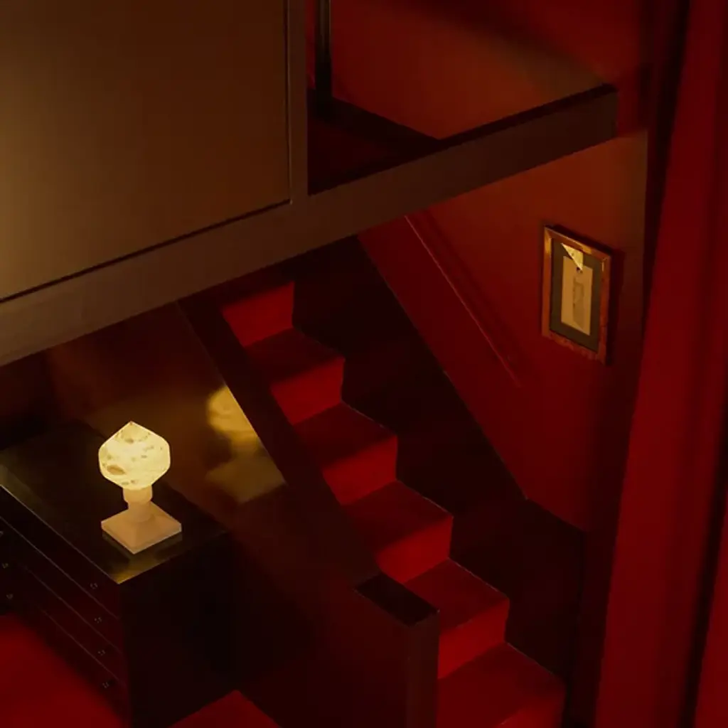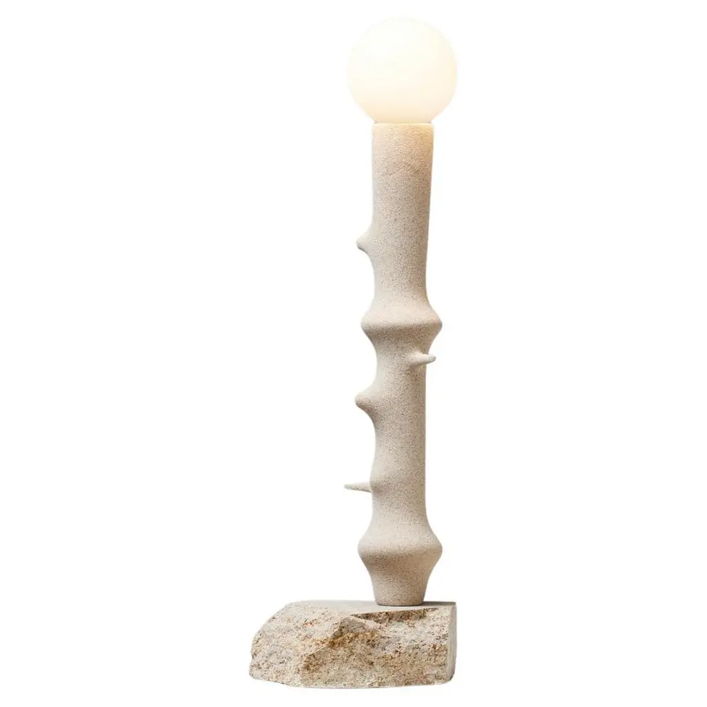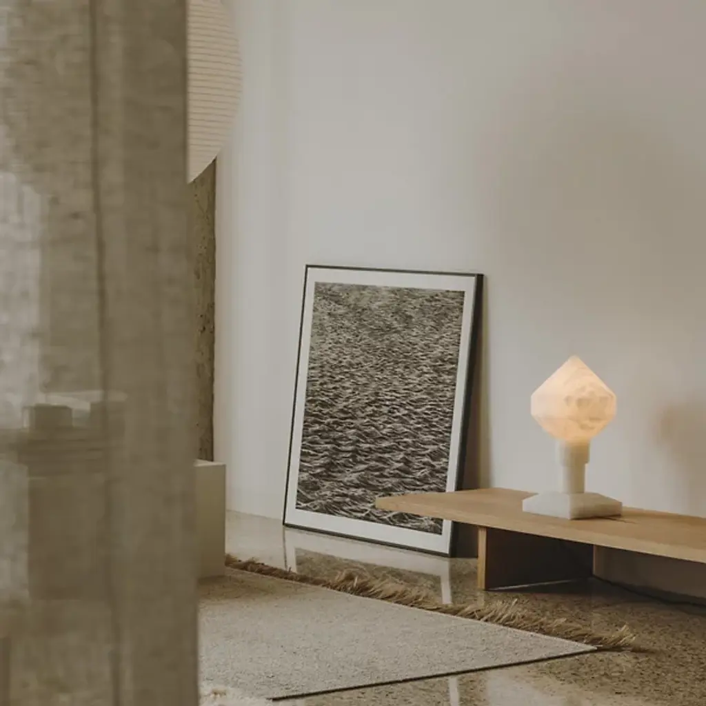 Designed in 1969, the Zeleste Table Lamps from Santa & Cole is a bedazzling object, drawing its intricate facets from Art Deco design. Multi-disciplinary artist Angel Jove’s work is informed by a sense of freedom. This lamp recalls Barcelona architecture through a beveled base and a towering cylindrical column. The pointy element topping the piece suggests a hand-cut jewel. Together with the shapes below, this Art Deco style form awes with natural alabaster texture. Warm light filters through the shapes to create an exciting silhouette of veiny accents. This light creates a lively ambiance.