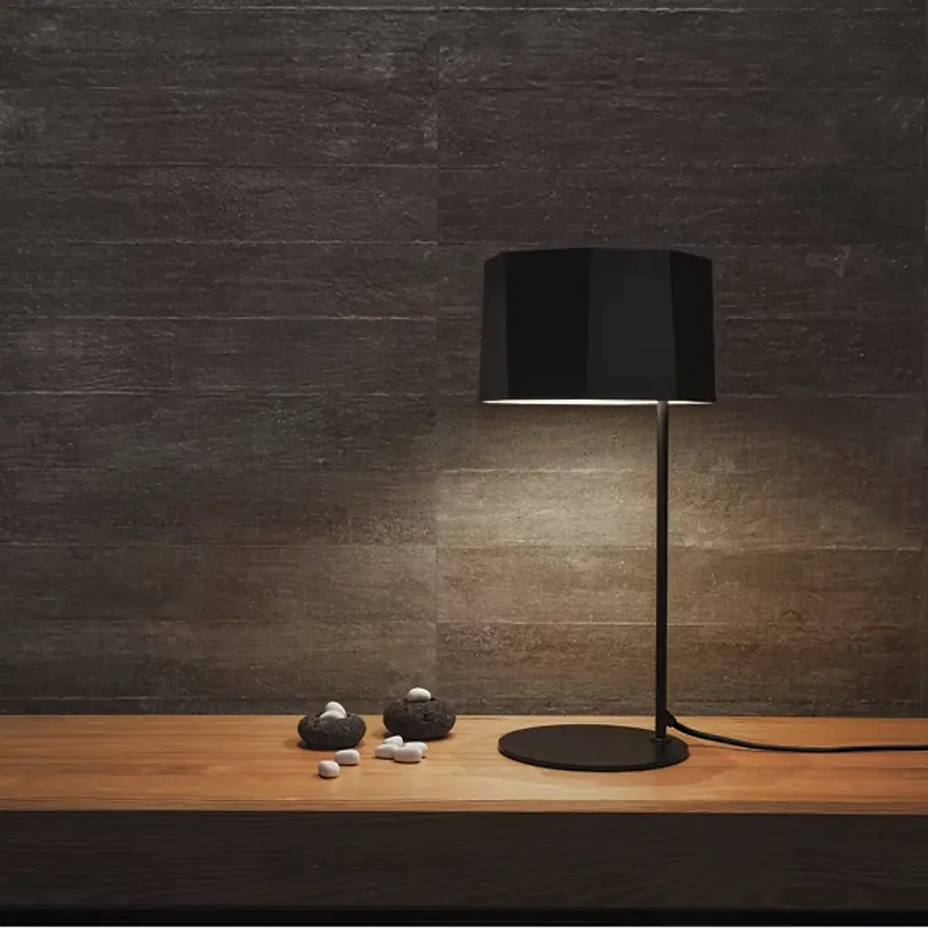 The Zhe Table Lamp from Seed Design offers a considered modern accent well-suited to a variety of indoor décor styles. Starting with a slim disc base and slender stem set at its rear side, it deploys potent lamping beneath a shade of hand-welded metal accented by the glass. The shade itself is secured by a finial of solid wood, which contrasts with the lower structure, which has been faceted into six sides, adroitly blocking glare from the sides while spilling out a bright glow below the fixture.