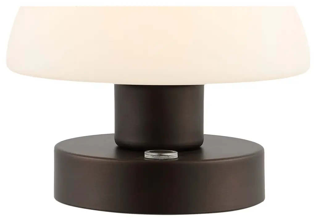 Add mid-century flair to your bar, console, or vanity with our 7.9" tall accent lamp. This cordless, rechargeable mini lamp is the perfect minimalist accent for your dining room, living room, bedroom, or entry. The frosted glass mushroom globe has single LED bulb, for soft accent lighting with clean lines and a high-quality finish.Features:• This cordless mushroom lamp has a minimalist look with its modern dome shade and vintage bronze finish• Cordless, portable lamp has a rechargeable battery for convenient accent lighting on a bar, console, or vanity• The frosted glass shade and warm LED bulb work together to produce soft ambient lighting• Integrated 2.5W LED bulb• Color: Oil Rubbed Bronze with white shade• Body Material: Metal• Includes: One (1) lamp• Assembly RequiredDimensions:• Lamp: 5.75 inches high x 6.125 inches wide x 6.125 inches deepAbout us:You see a lamp.We see a decorative work of art.A perfectly curved shade casts a dramatic shadow on a floor. A silk cord you never want to hide. Compatible with LED lightbulbs: as easy on the environment as they are on the eyes. The JONATHAN Y Lighting collection considers every detail from impeccably sourced materials to designer styling. And our prices are so attractive, we''ve transformed a functional necessity into a fashion accessory.JONATHAN Y Lighting - a fashion revolution in home decor.