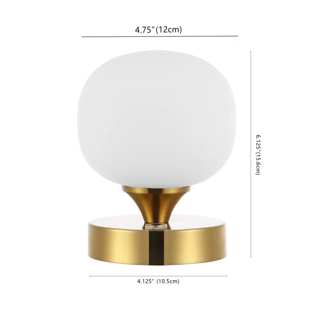 Add modern flair to your bar, console, or vanity with our 5" tall glass and metal accent lamp. This cordless, rechargeable mini lamp is the perfect minimalist accent for your dining room, living room, bedroom, or entry. A single LED bulb in a frosted glass globe provides soft accent lighting, with clean lines and a high-quality finish. Features: Dimensions: About us: You see a lamp.We see a decorative work of art.A perfectly curved shade casts a dramatic shadow on a floor. A silk cord you never want to hide. Compatible with LED lightbulbs: as easy on the environment as they are on the eyes. The JONATHAN Y Lighting collection considers every detail from impeccably sourced materials to designer styling. And our prices are so attractive, we've transformed a functional necessity into a fashion accessory.JONATHAN Y Lighting - a fashion revolution in home decor.
