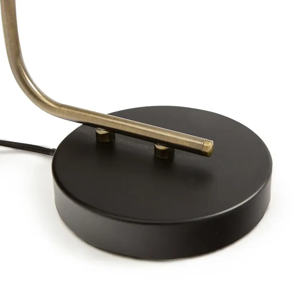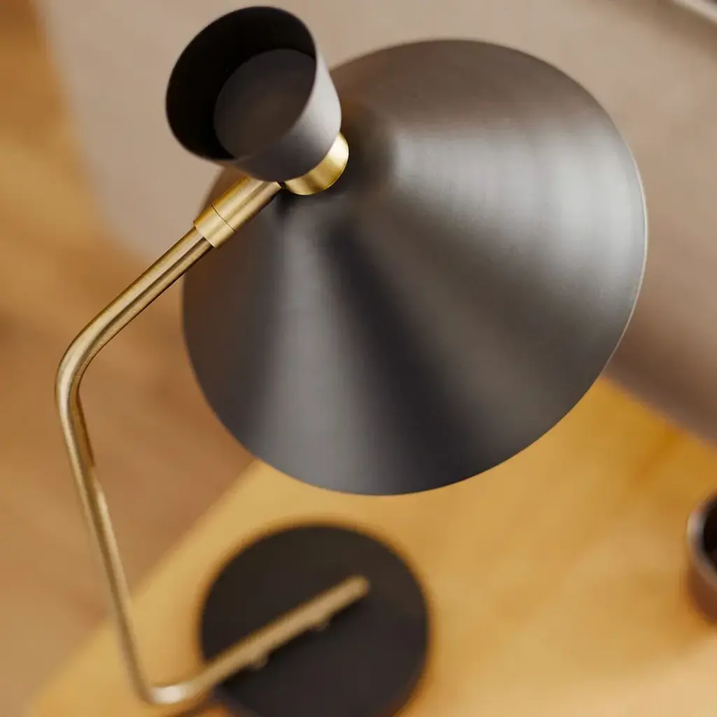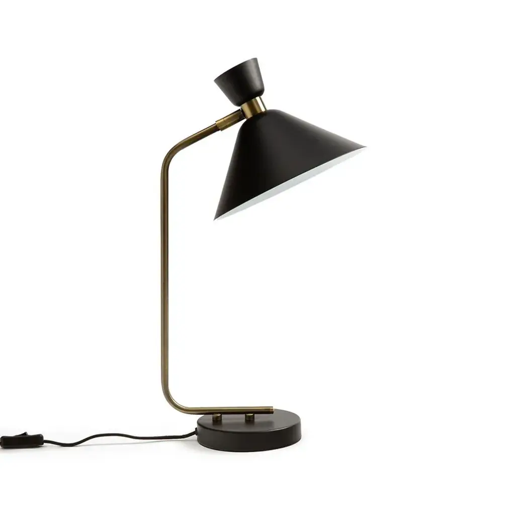 Zoticus is characterised by a 1950s design updated with a combination of black metal and brass. Decorative and functional, its swivelling shade provides targeted lighting ideal for a reading space. It can be used as a desk lamp or as a decorative object.Made of epoxy-coated metal and brassEG9 lamp holder for 5W max LED bulb (not included)Compatible with energy class A, B, C, D, E bulbs