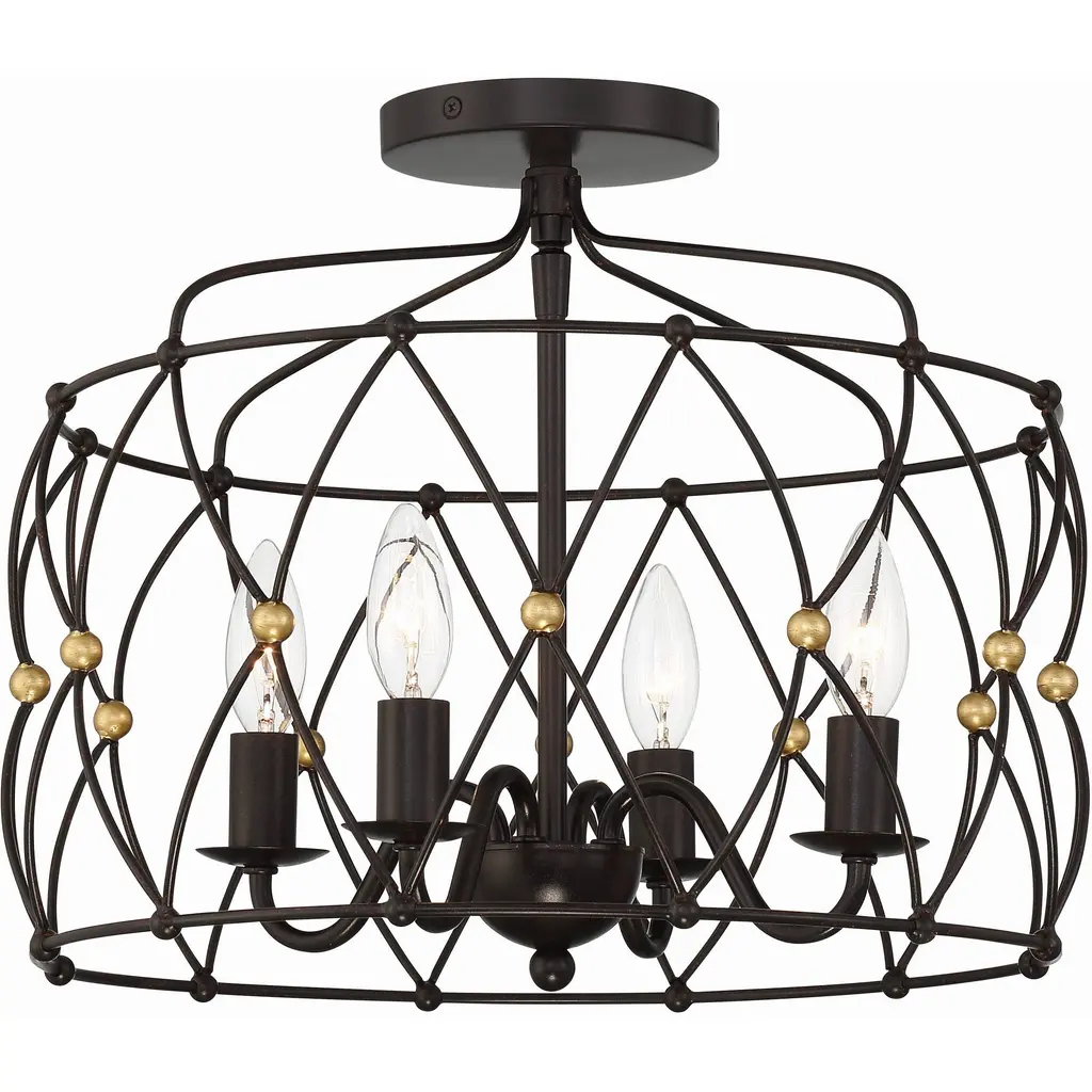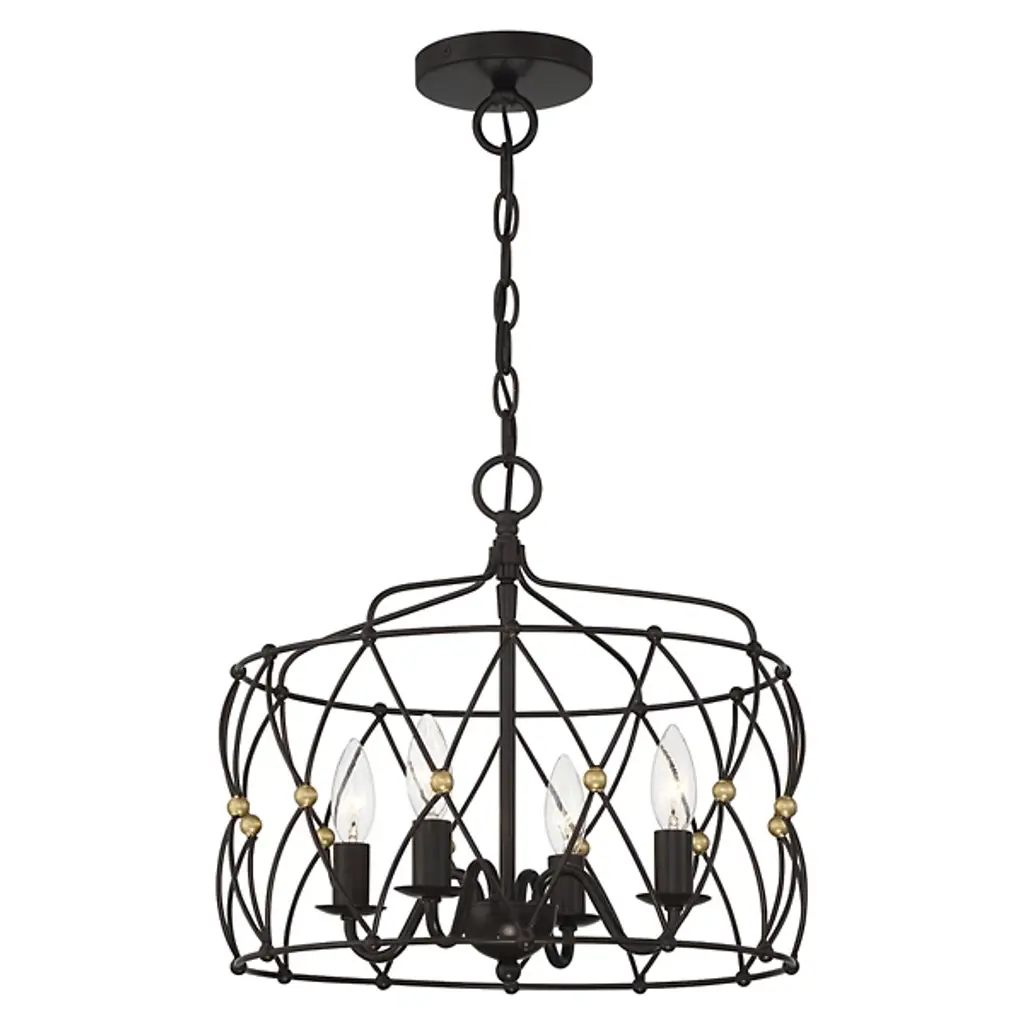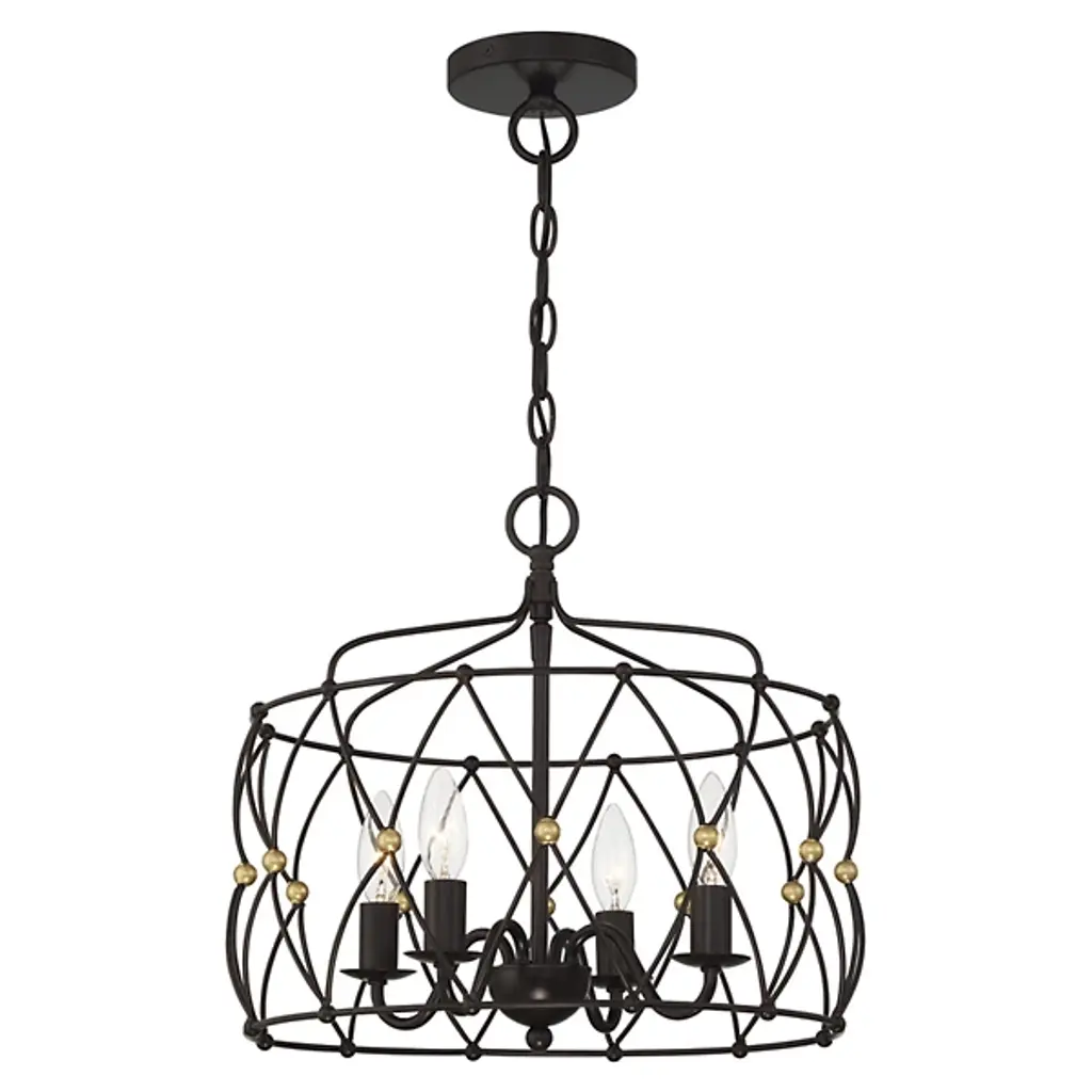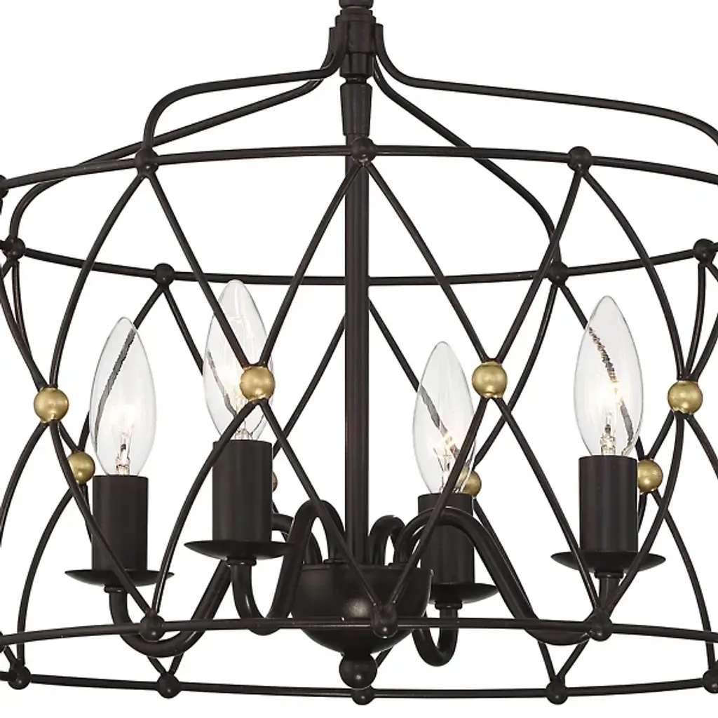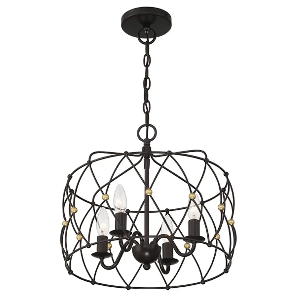 The Zucca Chandelier from Crystorama improves its surroundings with an open, vintage charm. Restrained by a disc canopy and slender chain, it uses a slim downrod to support a series of small candelabra lamps around it. Zucca means pumpkin in Italian, and the open fixture design keeps things fresh by contrasting a swooping outer structure with a more traditional inner fixture design.