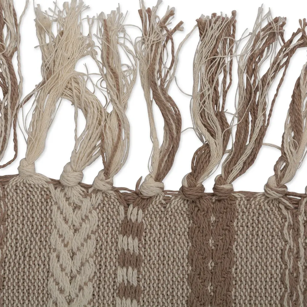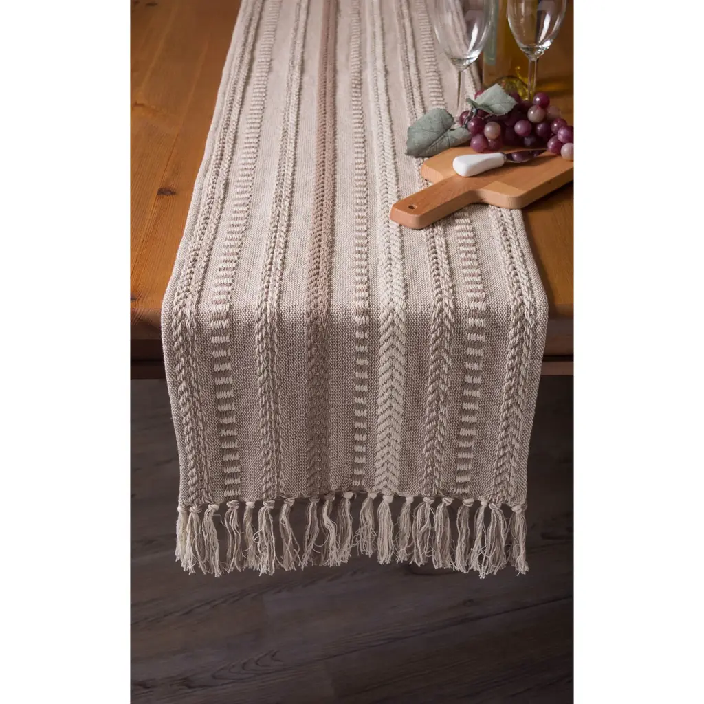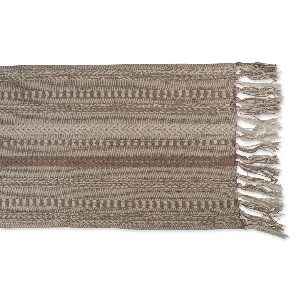 108" Brown Braided Stripe Rectangular Table Runner With Tassel Knots - Brown