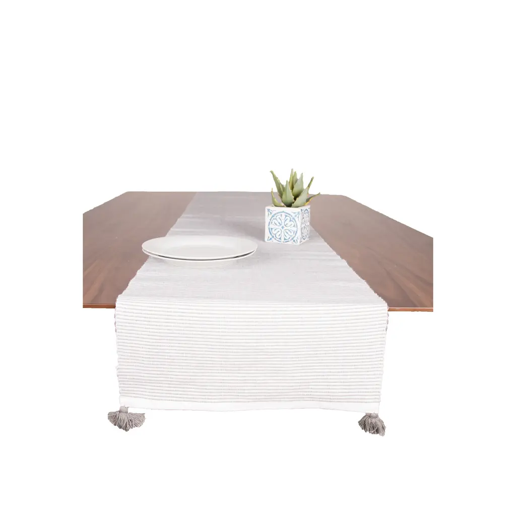 Modern and simple, the Bree collection adds another dimension to your tabletop and dining sets. This elegant design was created to layer with your existing tabletop collection. Machine washable, for ease of clean for many uses to come!Crafted of 100% CottonRunner measures 72" longSides have a natural self-edge. Iron for best results