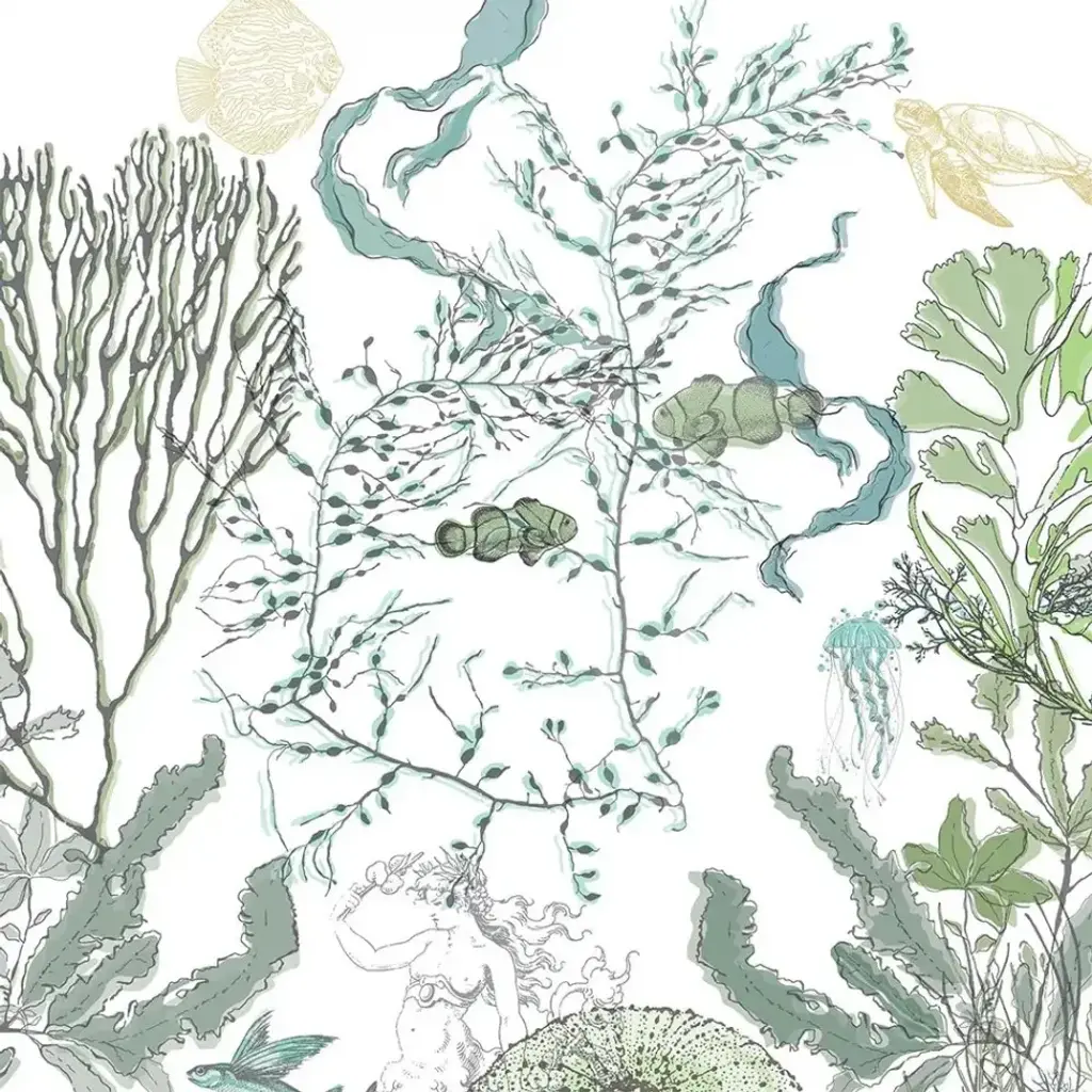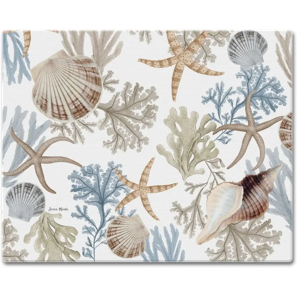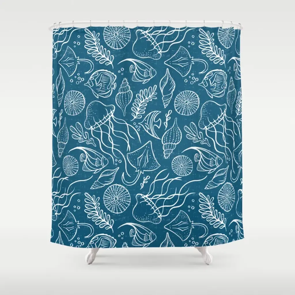 Let Behari transform your everyday table into your own private seaside retreat. Iconic oceanic motifs including octopus, coral, starfish, seahorses and shells float gracefully atop Behari with a hand-drawn look on a soft blue background making every day a relaxing beachy vacation. This beautiful pattern brings the coastal life in your breakfast nook, kitchen, or dining room. Behari reverses to a versatile abstract teal design for additional styling options. Finished with a scalloped edge, this tabletop collection is crafted of 100% cotton and hand guided machine quilting. Stains and spills are no problem, machine wash cold and tumble dry low for easy care. Love this pattern? The Behari collection is also available in a quilt set, and ruffled valance.Runner measures 51" longIconic oceanic motifs including octopus, coral, starfish, seahorses and shells float gracefully atop a soft blue backgroundCrafted of 100% Cotton