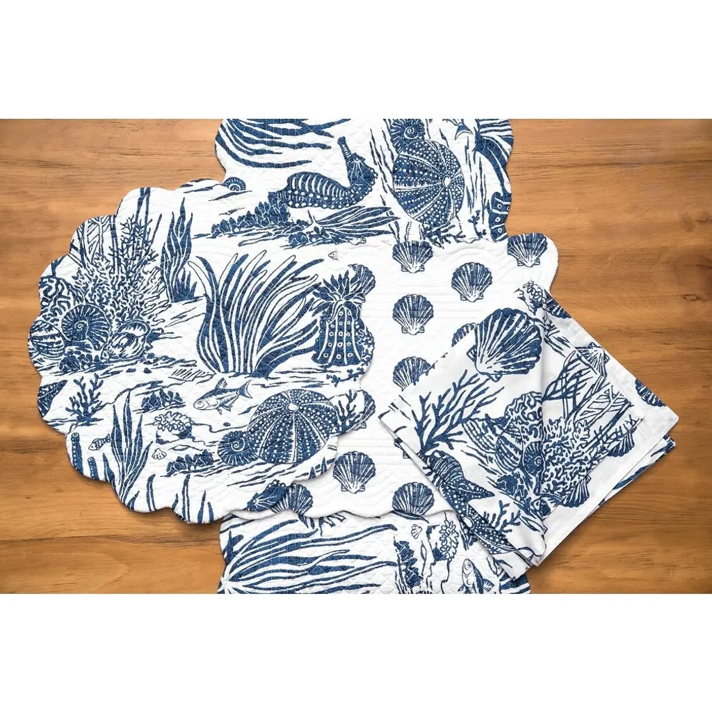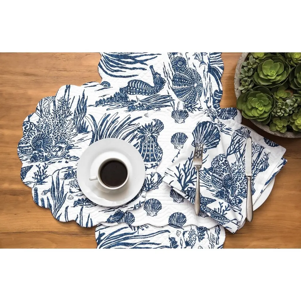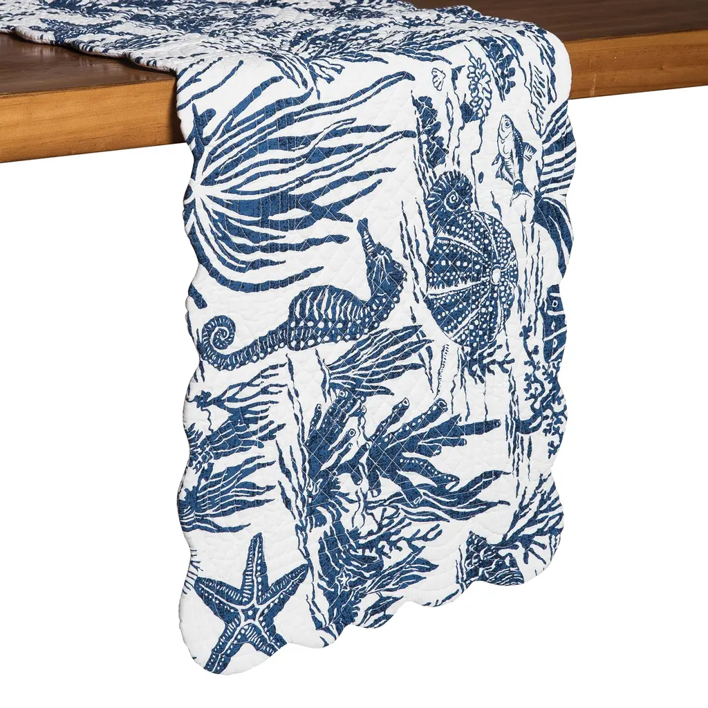 Transform any kitchen or dining room into a coastal paradise with the Reef Shores collection. This table runner features an underwater reef design that gives the room a dreamy beach vacation feel.Add the finishing touch to your tabletop with this charming cotton runner from C&F Home.Handcrafted of 100% Cotton this table runner is durable and long lasting. Makes a great gift for a birthday, wedding, housewarming or just because.This runner is machine washable for easy care. Touch up any wrinkles with an iron on low if needed.
