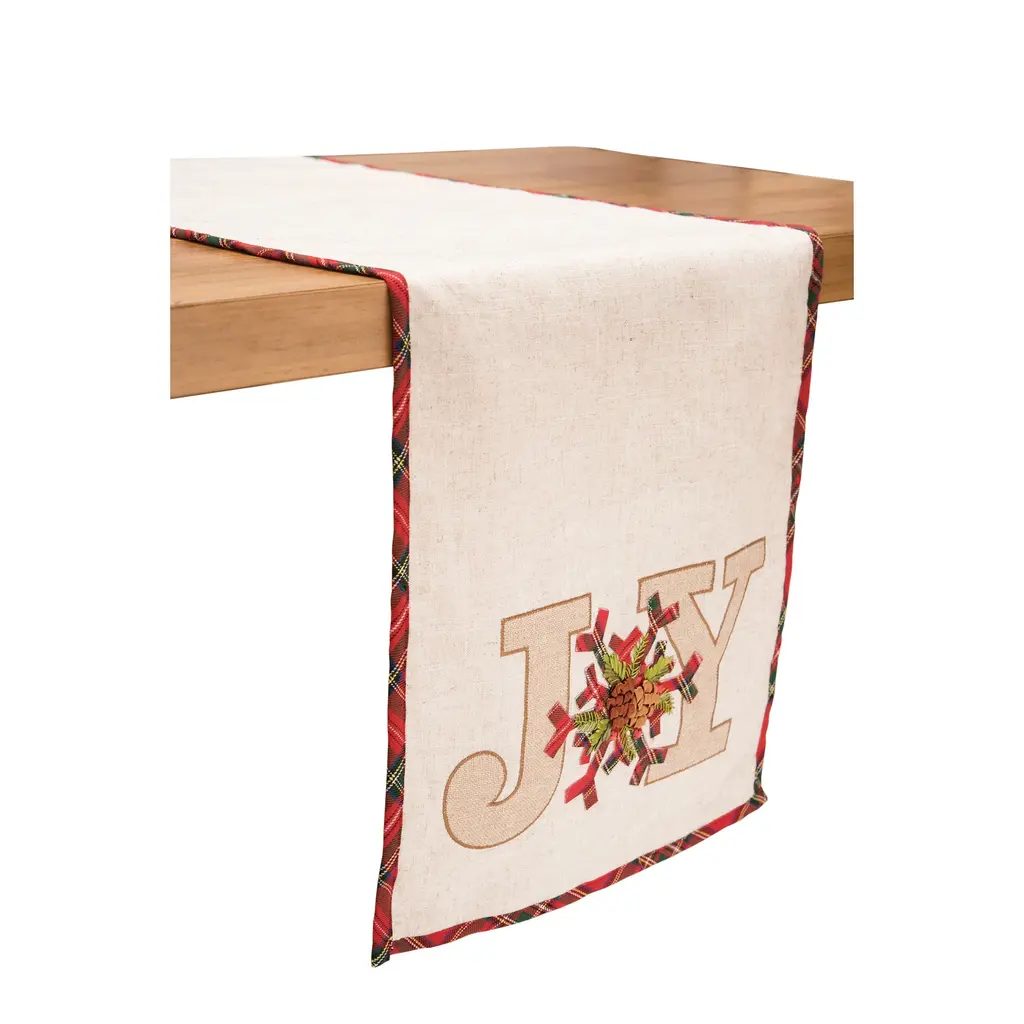 Decorate for the holiday season with our Joy Table Runner. It is sure to bring joy to your home year after year.Product measures 14" x 72"This product is made from Polyester.The perfect decoration for your holiday decor, it is sure to delight year after year!