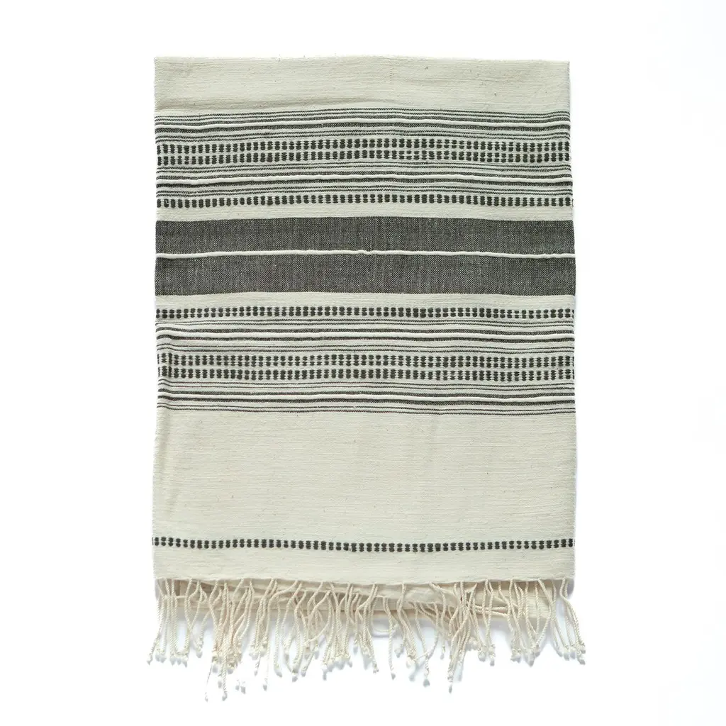 14" X 72" Stone Brown White Zig Dobby Stripe Decorative Table Runner - Off-White