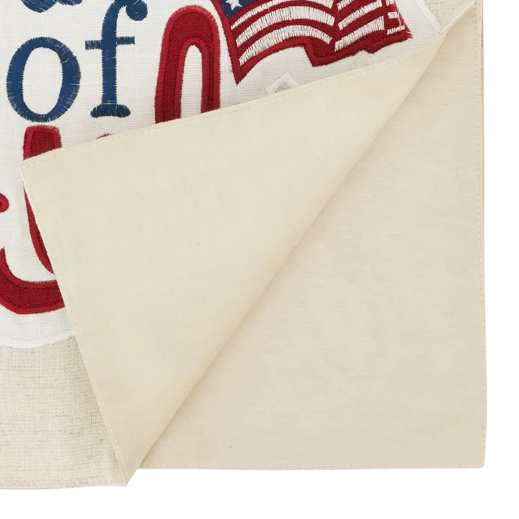 Perfect for 4th of July parties, this beautiful Table Runner with 4th of July Design adds color, flair and a patriotic spirit to your table. Also suitable for many other occasions, the runner brings a festive look to your tabletop. Pair with matching napkins or solid colors within the same palette for a coordinated look.Features: