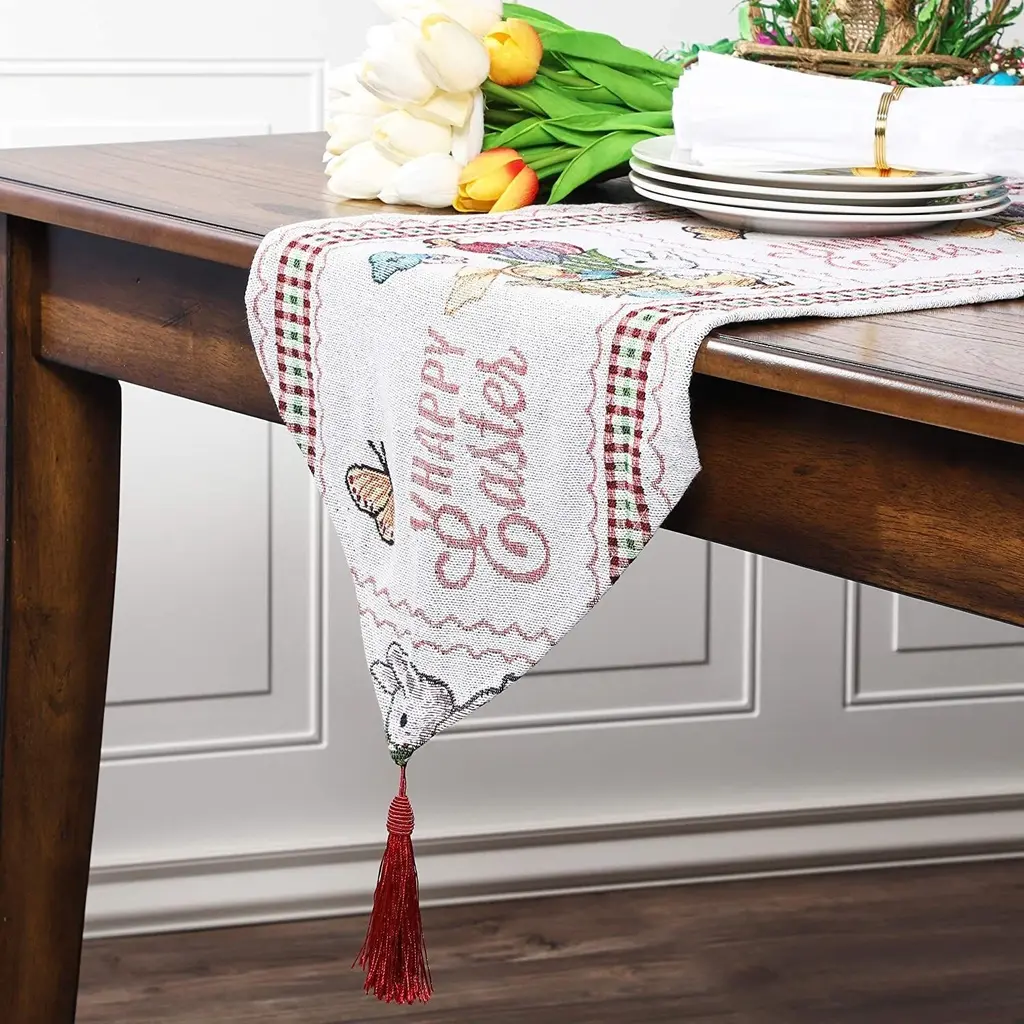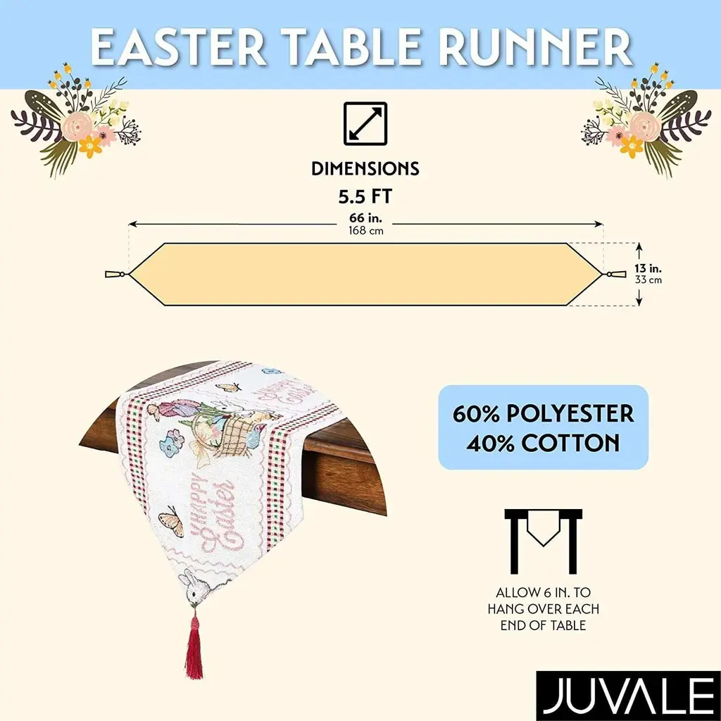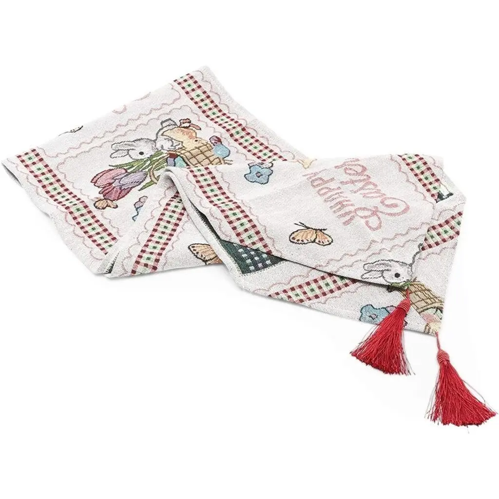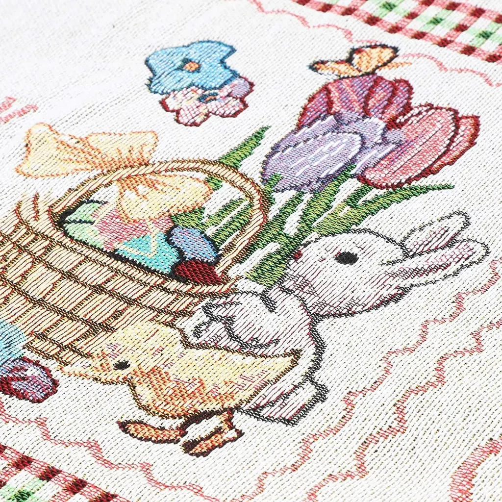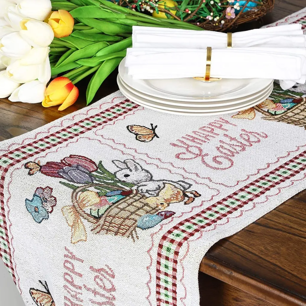 66"x13 Embroidered Easter Bunny Dining Table Runner Table Cloth Dresser Scarf - Multi-Color