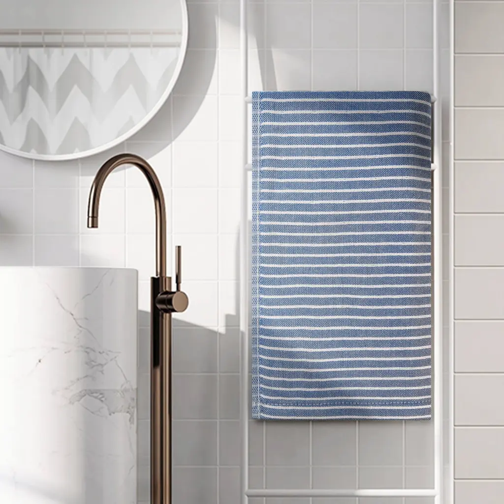 Enhance your dining table display with this beautiful Striped Table Runner. This piece is a great addition to the farmhouse or coastal/nautical style of home decor. The cool blue and white tones scheme paired with abstract striped design is the perfect combination to create a stunning display. The quality cotton and polyester composition is sure to last for seasons to come. Recommended for both functional and decorative use.