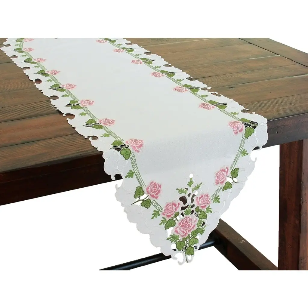 Avaliable in 16 by 34-Inch, 15 by 54-Inch and 15 by 72-Inch . Delicate and dainty embroidered florals on a crisp and clean white background make this a great accent for everyday, or when entertaining your guests! Machine washable, made of 100% easy care poliviscose., Beautiful cutwork and embroidered floral pattern., Matching Doily, Placemat, Traycloth, Table Runner and Table Topper available., Machine Washable! Made of easy care poliviscose.,