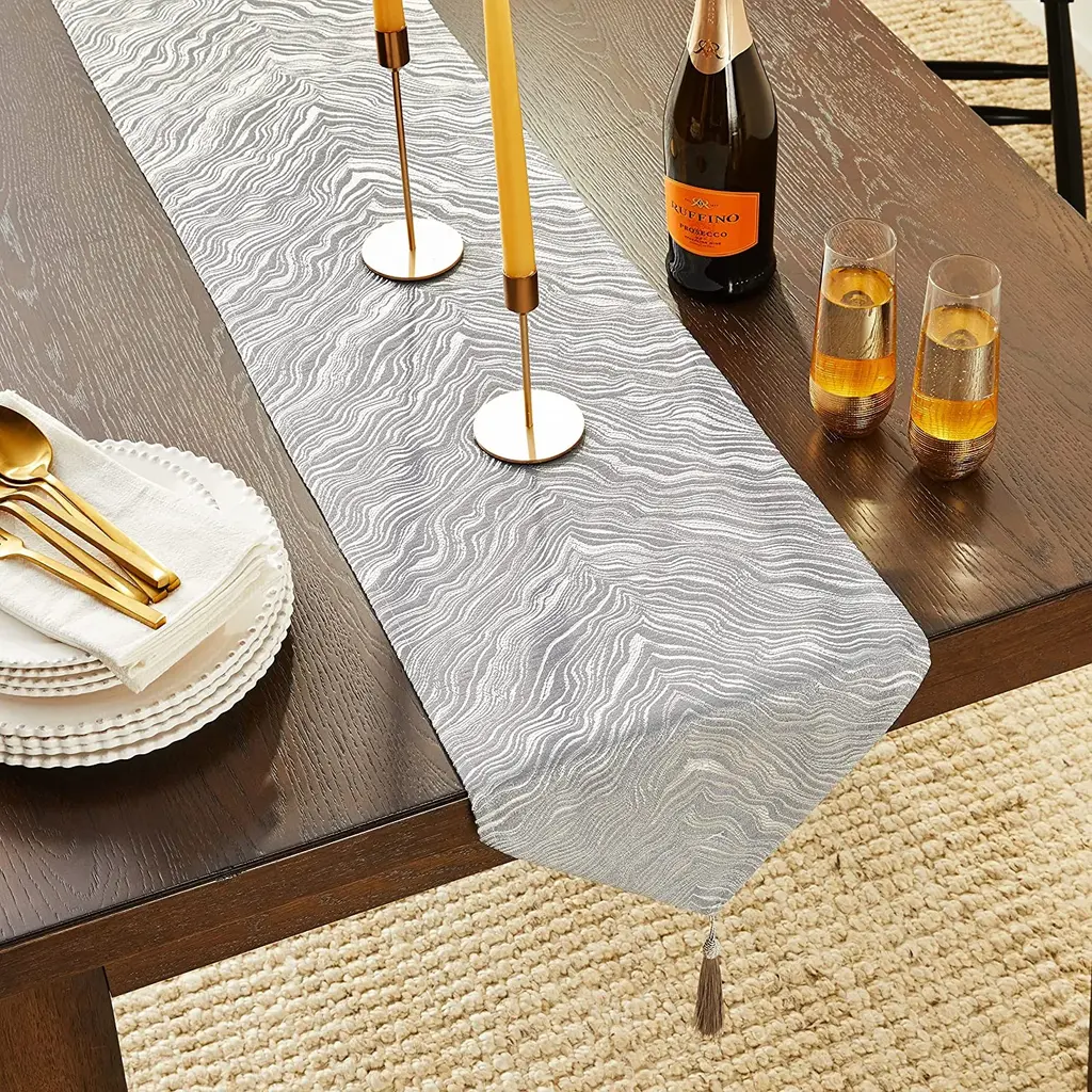 Artistic Wood Grain Metallic Cotton Table Runner - Silver - 16"x72"