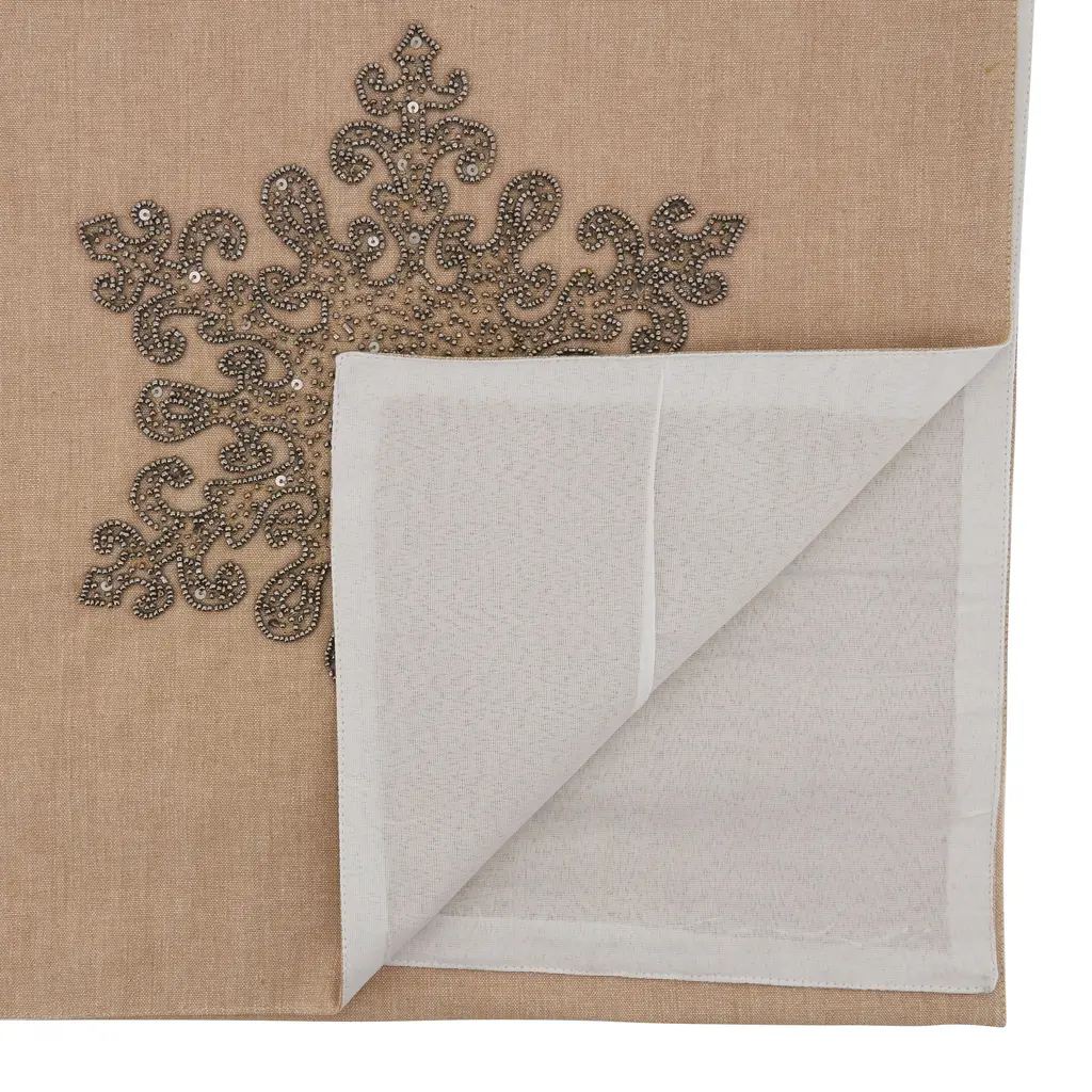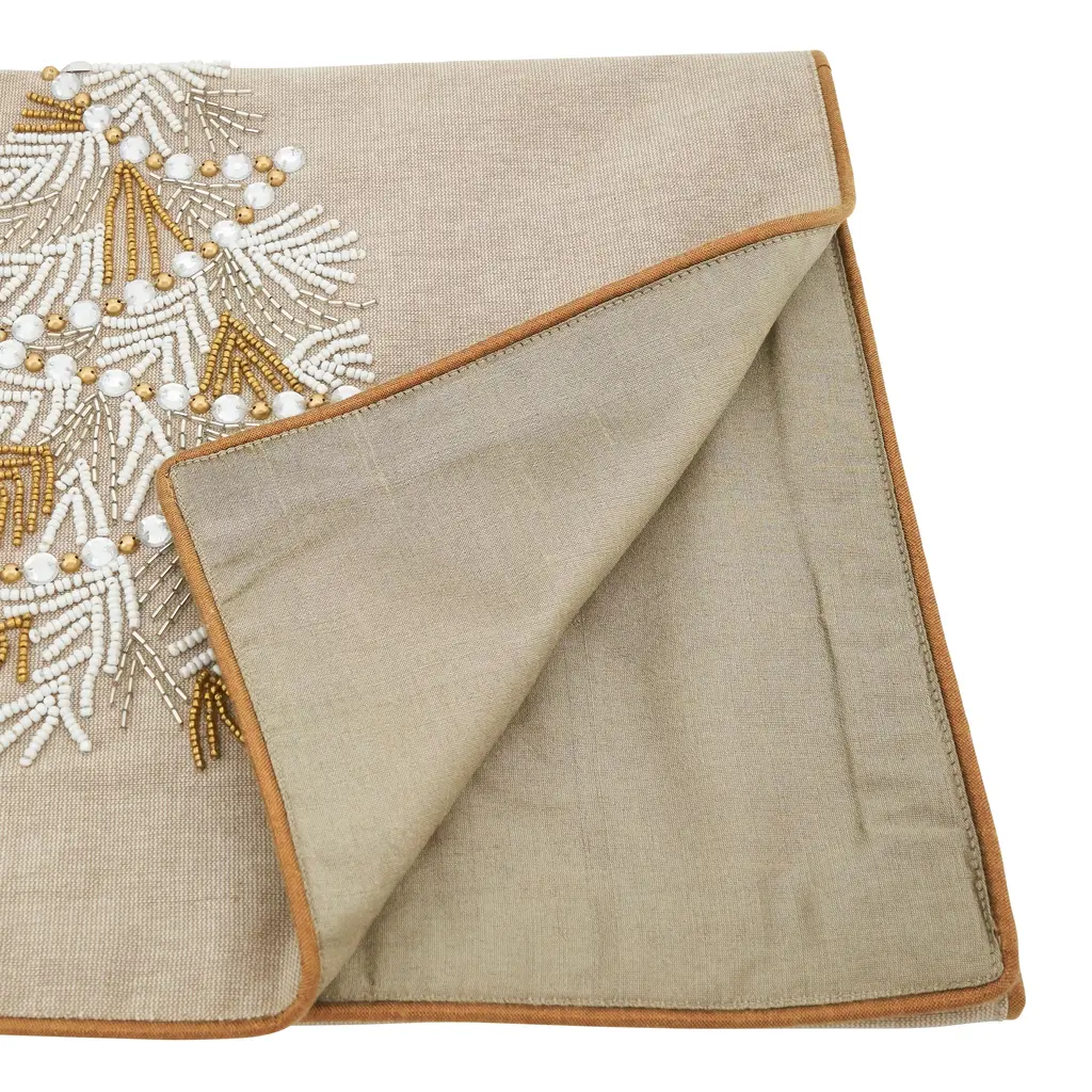 Lend elegance to your dining table with this holiday-themed table runner from Saro Lifestyle. Featuring a beaded Christmas tree motif and a colorful trim, this table runner is a charming complement to your Christmas china or other holiday decor. Made of 100 percent cotton, this table runner is soft, sturdy, and easy to spot clean. Features: