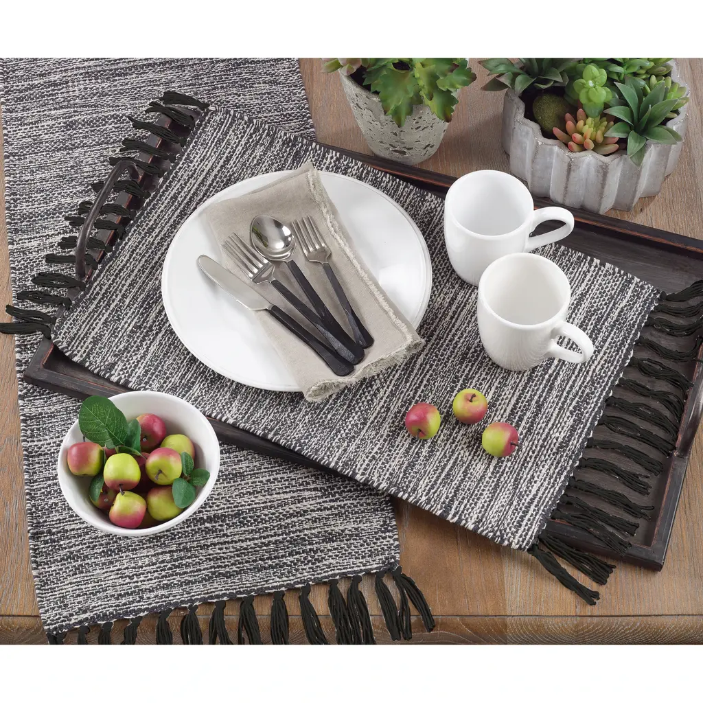 Black Cotton Table Runner With Tassels - N/a