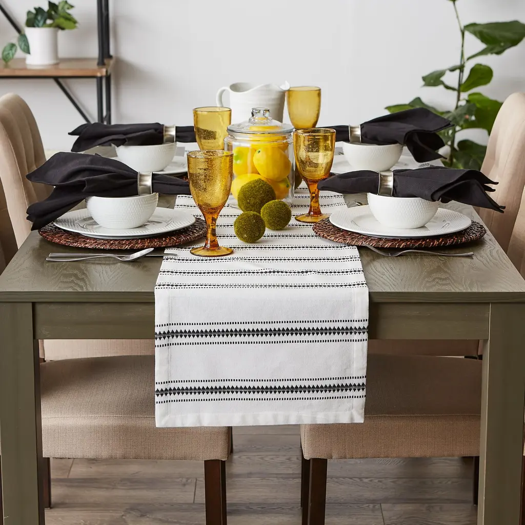 CREATE A FUN & RELAXED PLACE SETTING - Measures 14x108", appropriate for a table that can seat 4:6 people EASY CARE LONG:LASTING MATERIAL: 100% cotton fabric, machine wash with cold water on gentle cycle & tumble dry low; Do not bleach them or run them through a hot dryer AN EVERYDAY COLLECTION FOR YOUR KITCHEN : Our table runners are available in an assortment of colors and coordinate with our dishtowels, aprons, oven mitts, pot holders, napkins, and tablecloths : own the whole collection THE TABLE RUNNER YOU'LL LOVE: Our table runner can spruce up dining, foyer, console or coffee tables while still showing off the surface of furniture; Set plants or other centerpieces atop our durable and long lasting table runner to update any space.