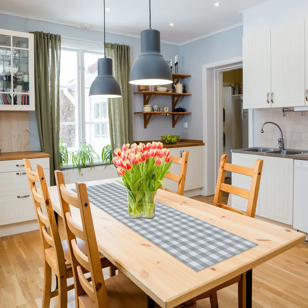 The classic buffalo check pattern comes to life on the Buffalo Check Table Runner. Each table runner is made of woven fabric, using yarn dyed poly-cotton material. Table runners create a perfect accent to your table setting or on a piece of accent furniture. Buffalo Check table runners are a simple way to freshen up your décor for every-day use or any occasion. Completely reversible and look great with either the Buffalo Check pattern or when flipped to the solid color. The material is stain repellent and machine washable. One table runner per pack. Coordinate your home in buffalo check with the entire Buffalo Check Collection of window treatments, floor mats, placemats, napkins, kitchen accessories and so much more. All sold separately. Achim Home Décor - Bringing Great Design Home. • Buffalo check pattern features bold yet classic design • Stain-resistant poly-cotton material looks and feels great • 13-in wide table runners with available options of 36-in, 48-in, 72-in, 90-in long • Completely machine washable • Each Table Runner sold separately