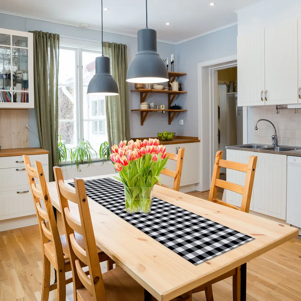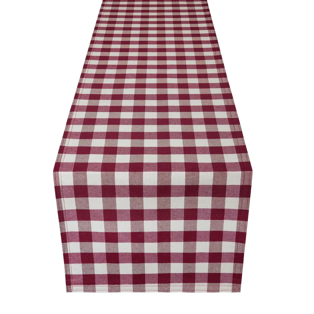 The classic buffalo check pattern comes to life on the Buffalo Check Table Runner. Each table runner is made of woven fabric, using yarn dyed poly-cotton material. Table runners create a perfect accent to your table setting or on a piece of accent furniture. Buffalo Check table runners are a simple way to freshen up your décor for every-day use or any occasion. Completely reversible and look great with either the Buffalo Check pattern or when flipped to the solid color. The material is stain repellent and machine washable. One table runner per pack. Coordinate your home in buffalo check with the entire Buffalo Check Collection of window treatments, floor mats, placemats, napkins, kitchen accessories and so much more. All sold separately. Achim Home Décor - Bringing Great Design Home. • Buffalo check pattern features bold yet classic design • Stain-resistant poly-cotton material looks and feels great • 13-in wide table runners with available options of 36-in, 48-in, 72-in, 90-in long • Completely machine washable • Each Table Runner sold separately