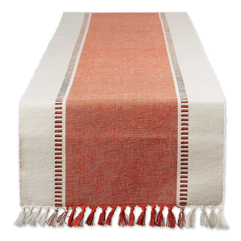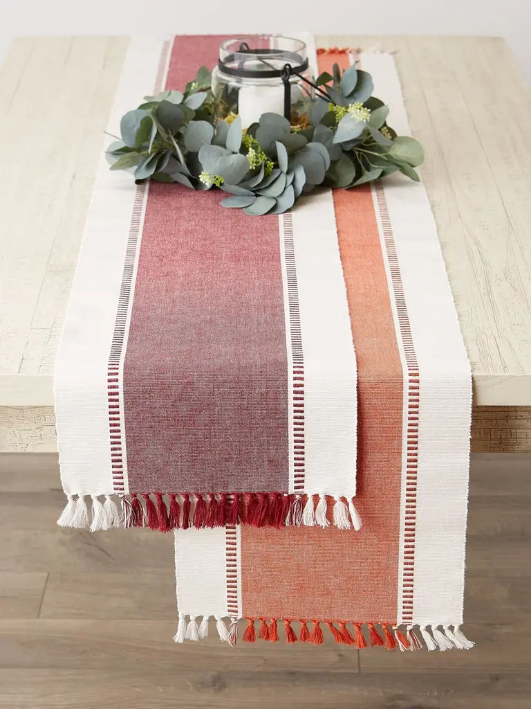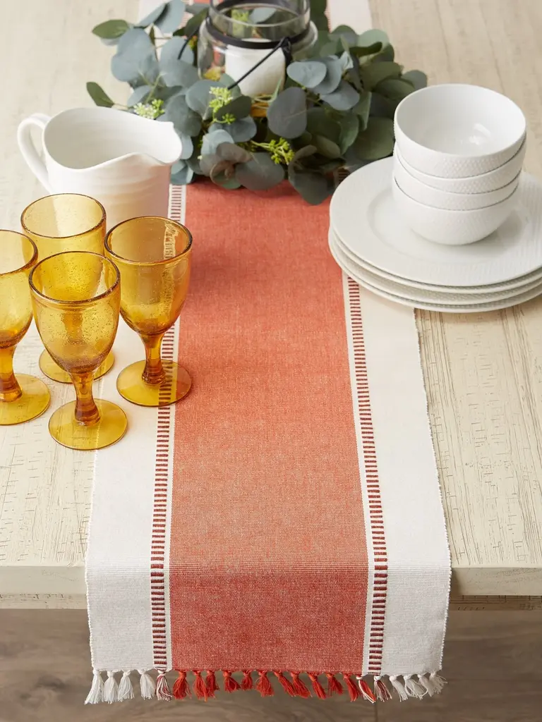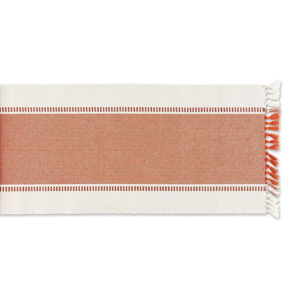 Burnt Orange Striped Fringe Ribbed Table Runner 13x72