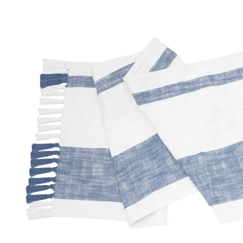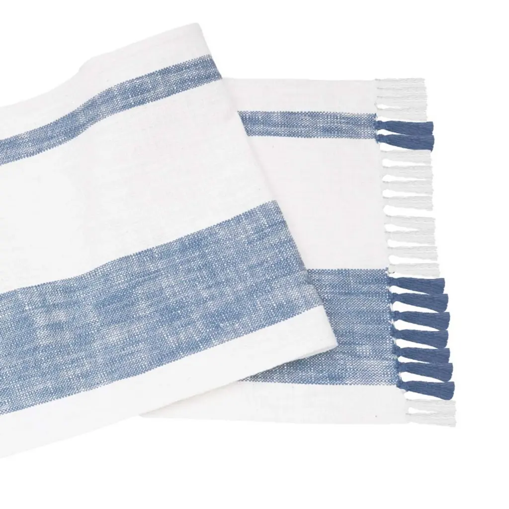 A new interpretation of a carol & frank classic - Morgan table linens. Handwoven by skilled artisans, the 100% cotton Morgan table linen collection is available in the color options of boulder, denim, dune, indigo, and surf. Table linens include placemat sets, runners, and napkin sets. Mix and match colors or with other linen collections to create vibrant layered table settings.