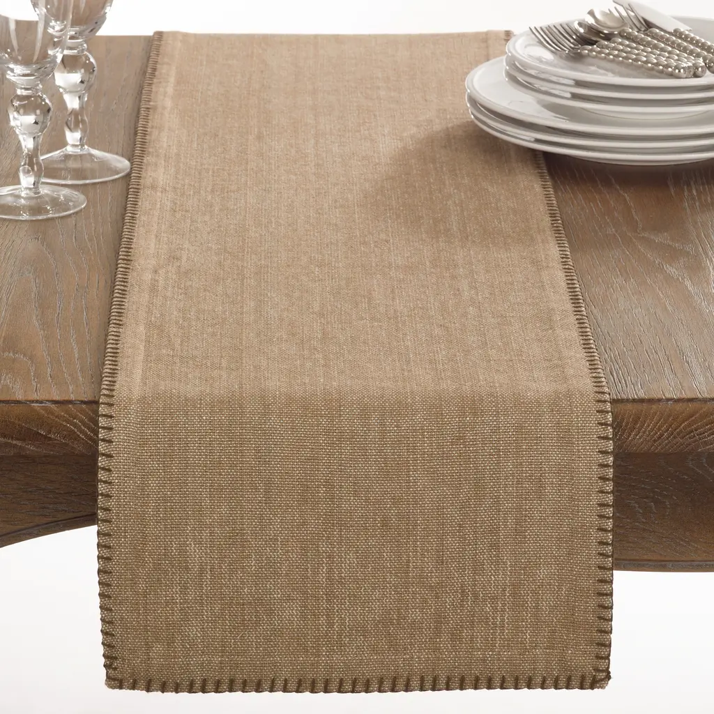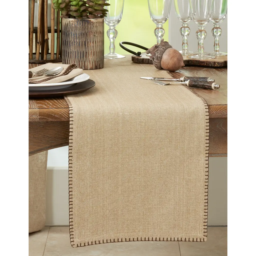 Add a natural look and feel to your tabletop with this lovely Whip Stitched Design Table Runner. Made with 100% cotton, the long table runner is durable and ideal for any occasion, from everyday meals to casual entertaining. Pair with matching placemats or a coordinated look or with different prints to create a contrasting effect.Features: