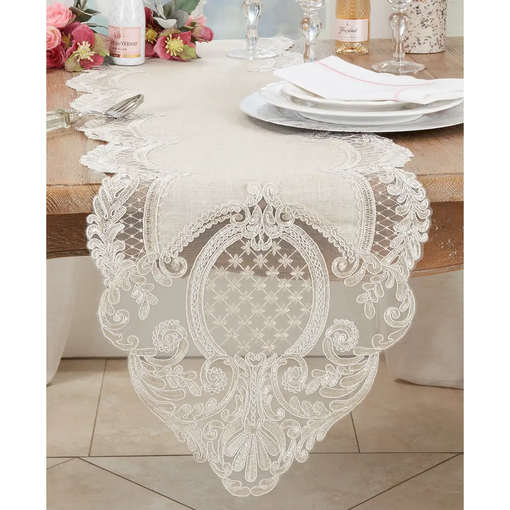 Charming Embroidered Lace Table Runner - 16"x54" - Natural.