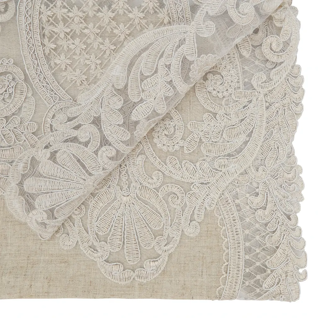 Charming Embroidered Lace Table Runner - 16"x90" - Natural.