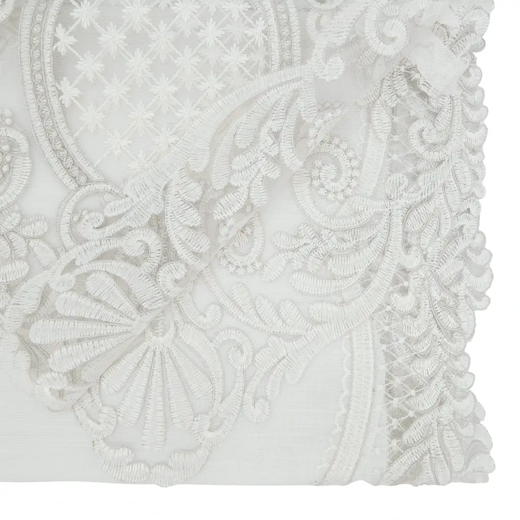 Elevate your table with this Embroidered Lace Table Runner. Delicate and intricate, it adds an elegant touch to any occasion. Crafted with meticulous embroidery, this runner brings timeless beauty to your dining experience, creating a sophisticated and inviting atmosphere.Features: