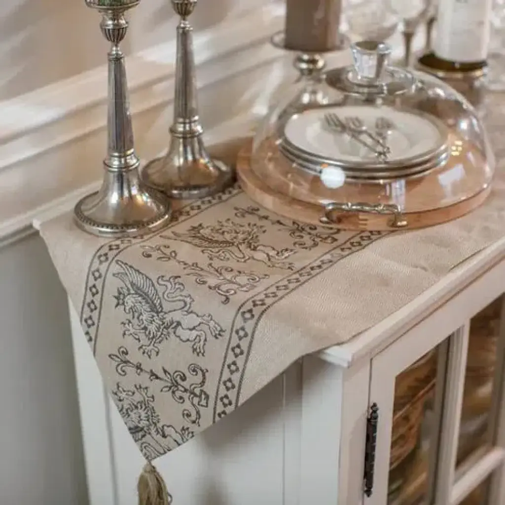 Add a pop of color and elegance to your dining experience with this cotton table runner in vibrant red and orange. Featuring a wide check design beautifully complemented by intricate damask and diamond-stitch-style patterns, this table runner is crafted from colorfast, wrinkle-resistant cotton, ensuring long-lasting durability and easy maintenance. Features: Wide check design accented with elegant damask and diamond-stitch-style patterns Crafted with colorfast wrinkle resistant 100% cotton Appropriate for tables that can seat 4-6 people Accented with a 1-inch folded hem and mitered corners Prevents spills, stains, and scratches on your tabletop Care instructions: machine washable, gentle cycle, tumble dry low and low iron if needed Recommended for indoor use Dimensions: 14" wide x 72" long Material(s): cotton