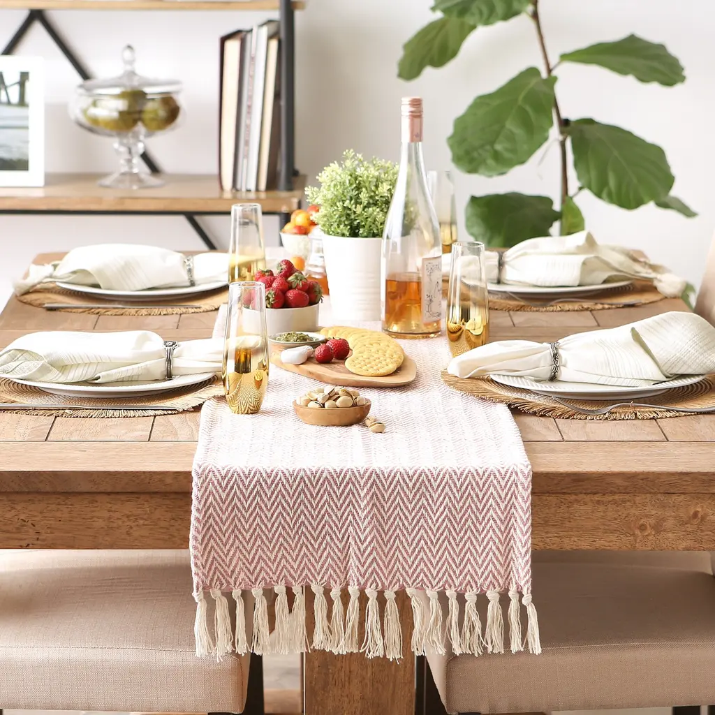 Chevron Handloom Table Runner - 15x108" - Avocado