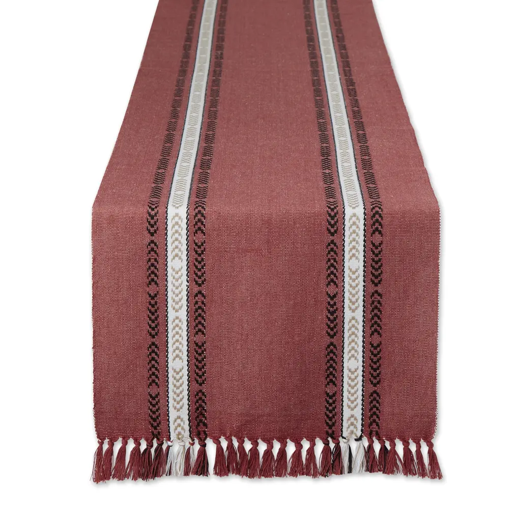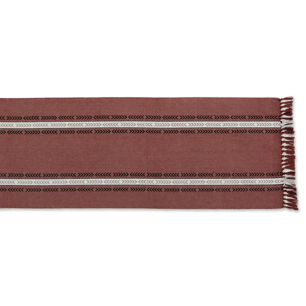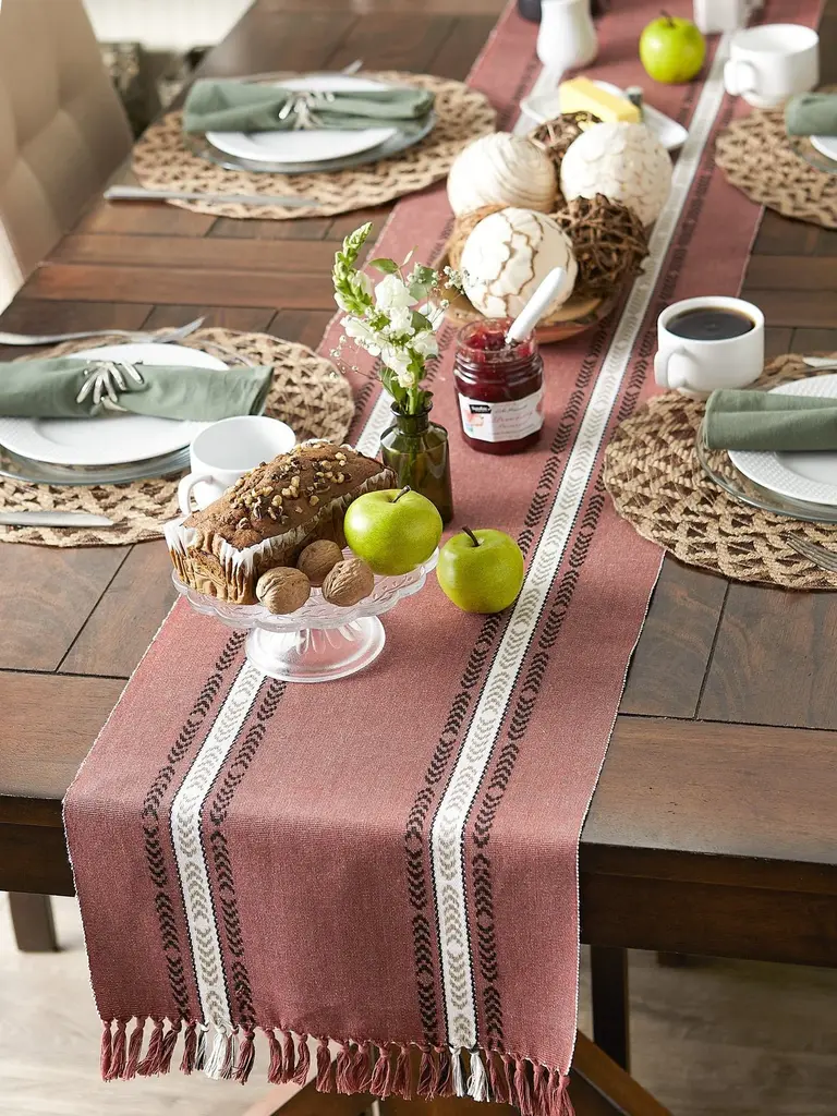 CLAY DOBBY STRIPED FRINGE RIBBED TABLE RUNNER 14x72