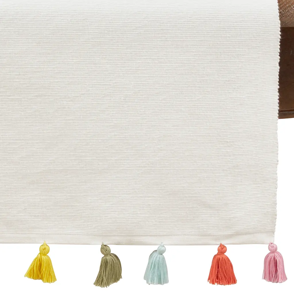 Colorburst Tassel Table Runner - Ivory