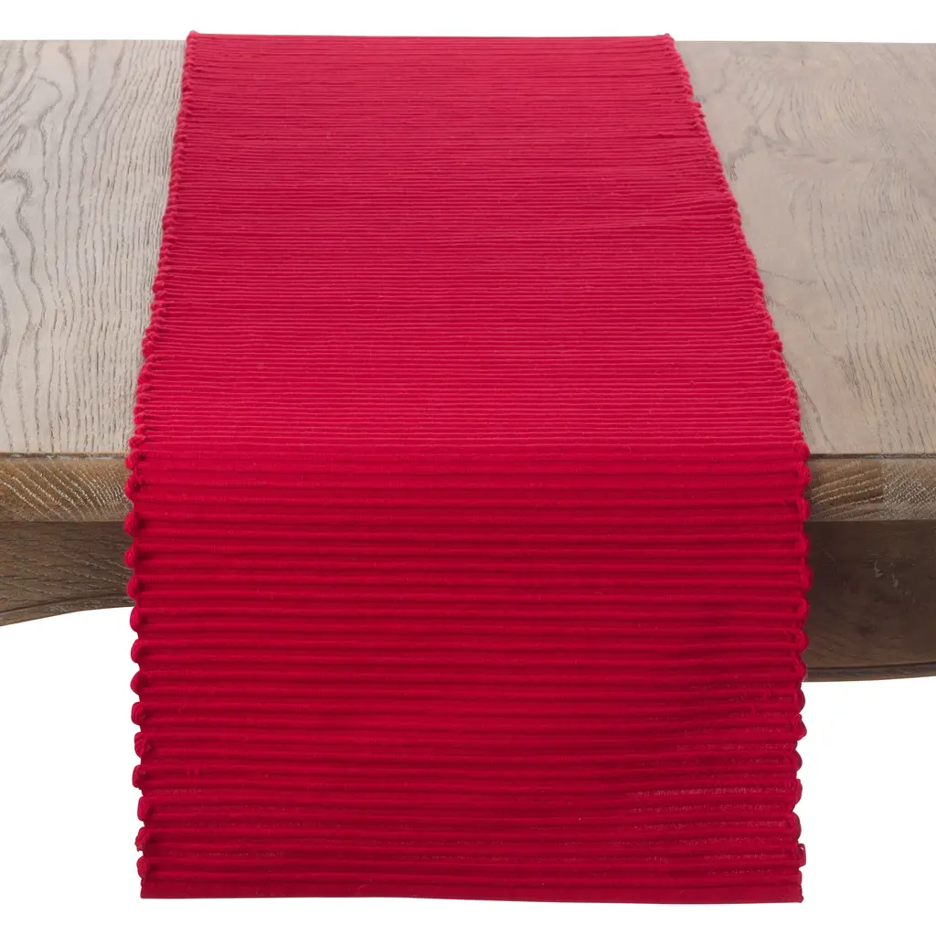 A stylish tablescape will always have consistency and structure, and you can easily achieve both with this gorgeous Ribbed Design Table Runner. Its bright color offsets neutral tones and brings fervor to wooden tables, while the natural cotton construction brings an earthy accent. Pair with matching placemats for a coordinated look.Features: