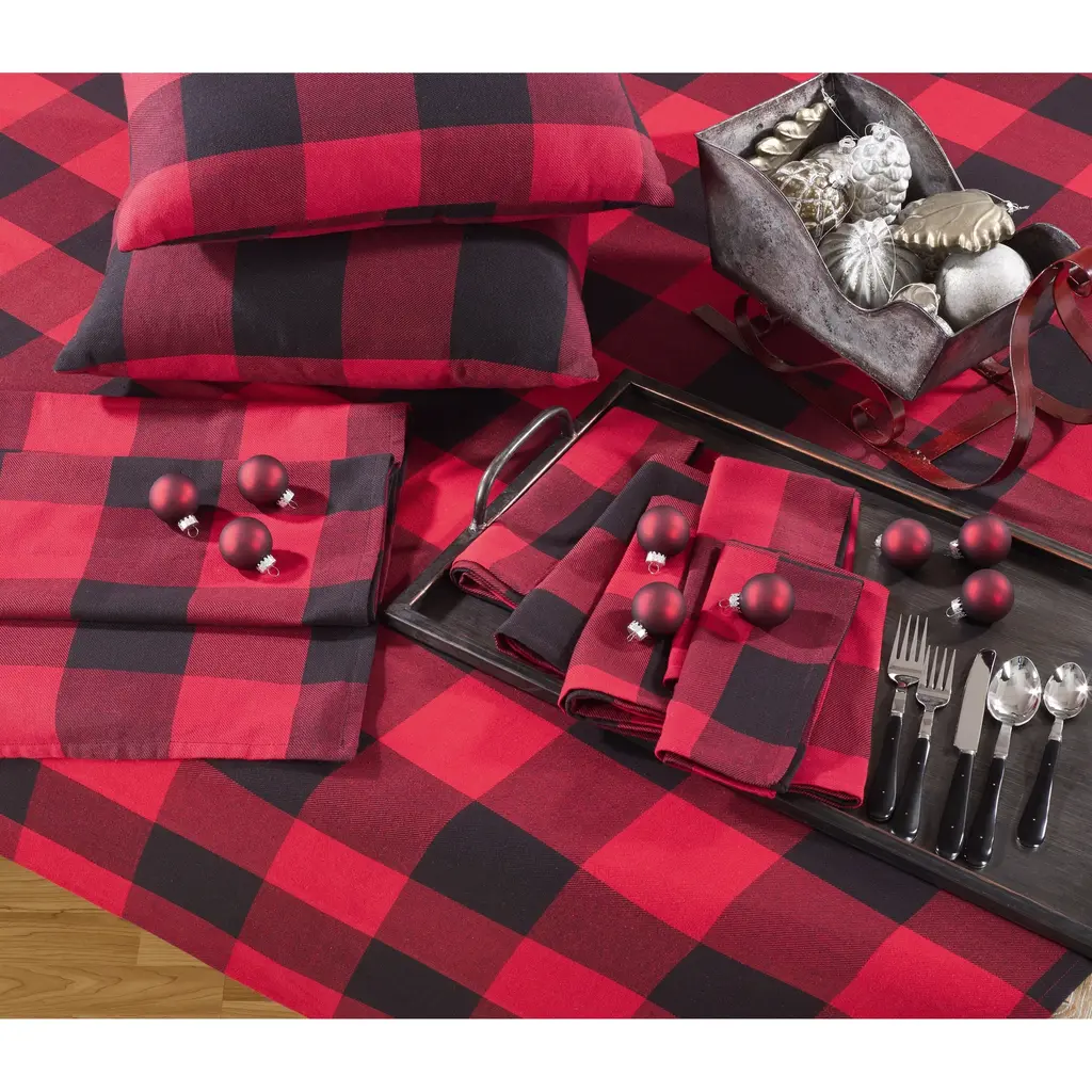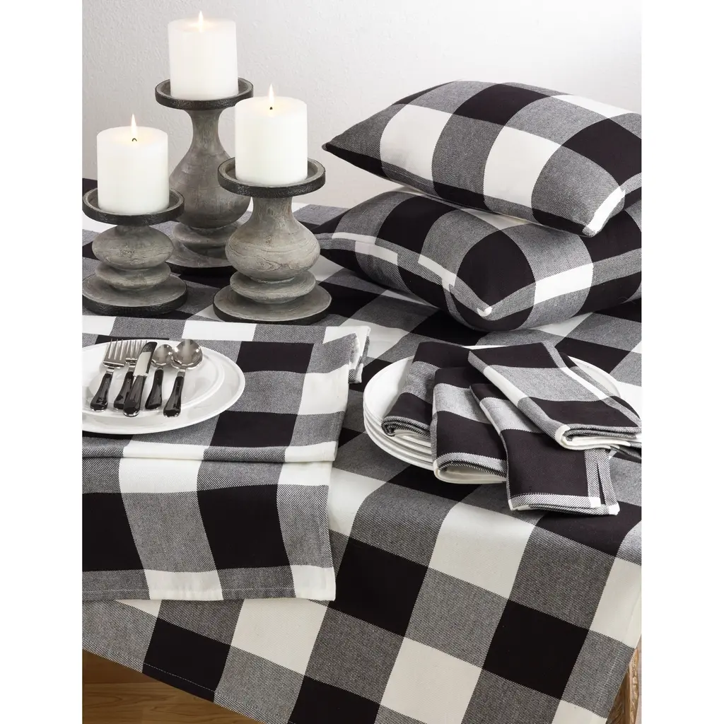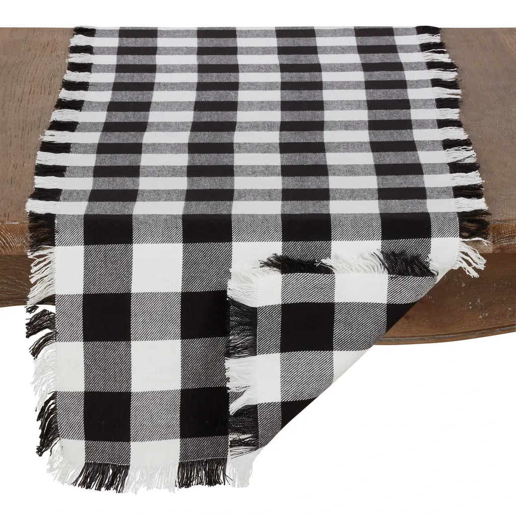 Cotton Table Runner With Buffalo Plaid Pattern - Black - 16 X 108