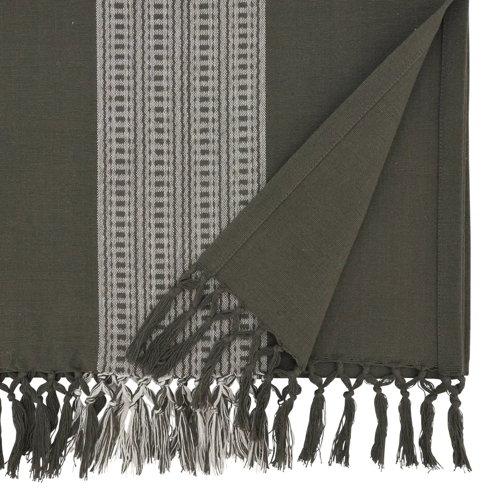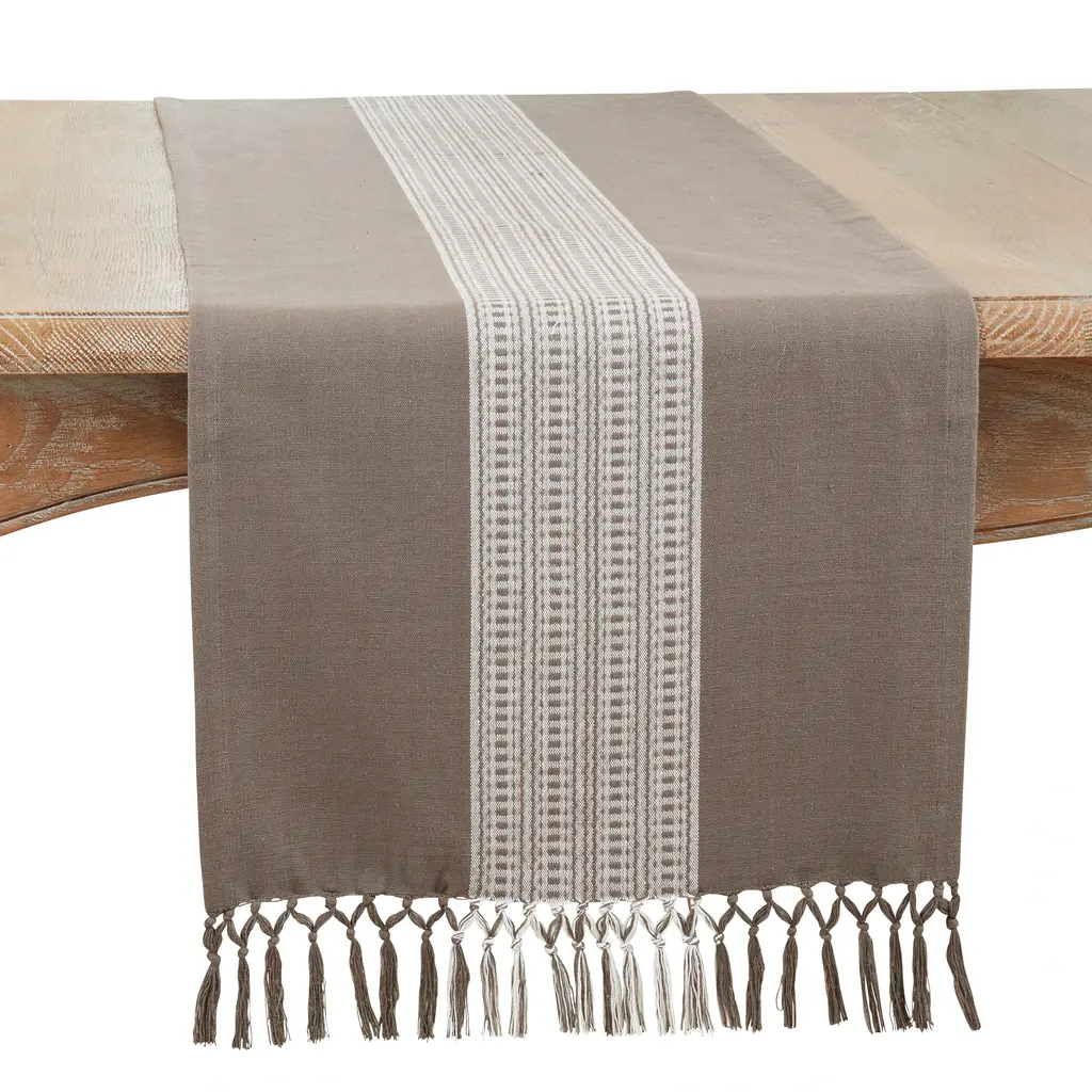 Cotton Table Runner With Stripe Design - 16"x72" - Grey