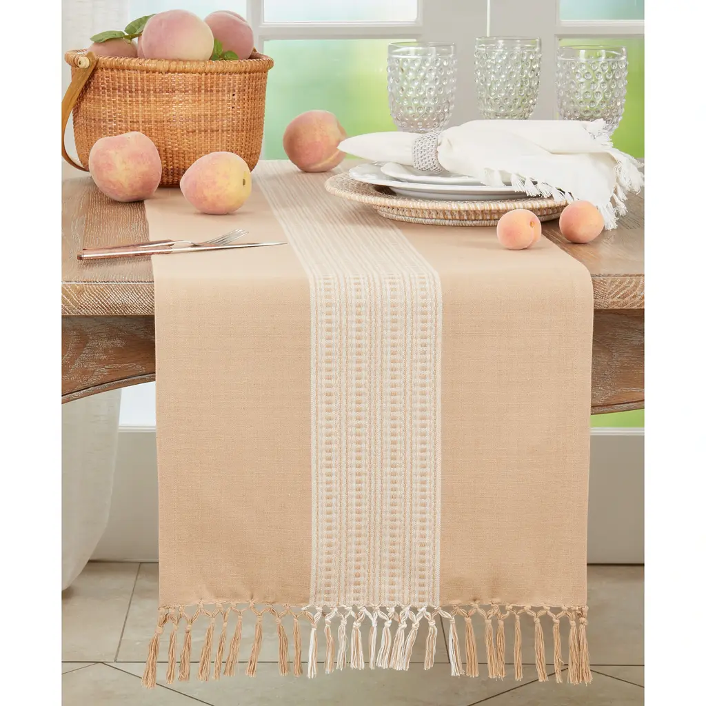 This lovely Stripe Design Table Runner is a smart addition to your dining arsenal. It adds texture and color to the tabletop, without overwhelming the setting. It's also easy to pair with a wide range of dinnerware and table linens, but for a coordinated look you can go with the matching placemats.Features: