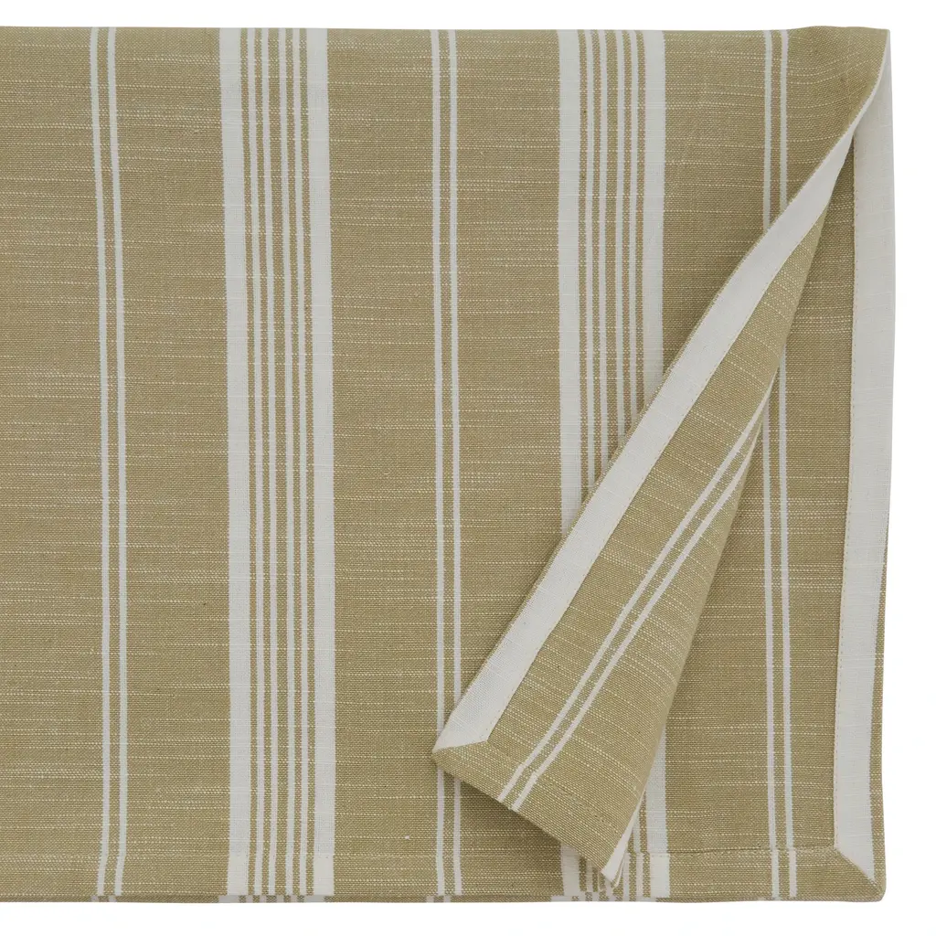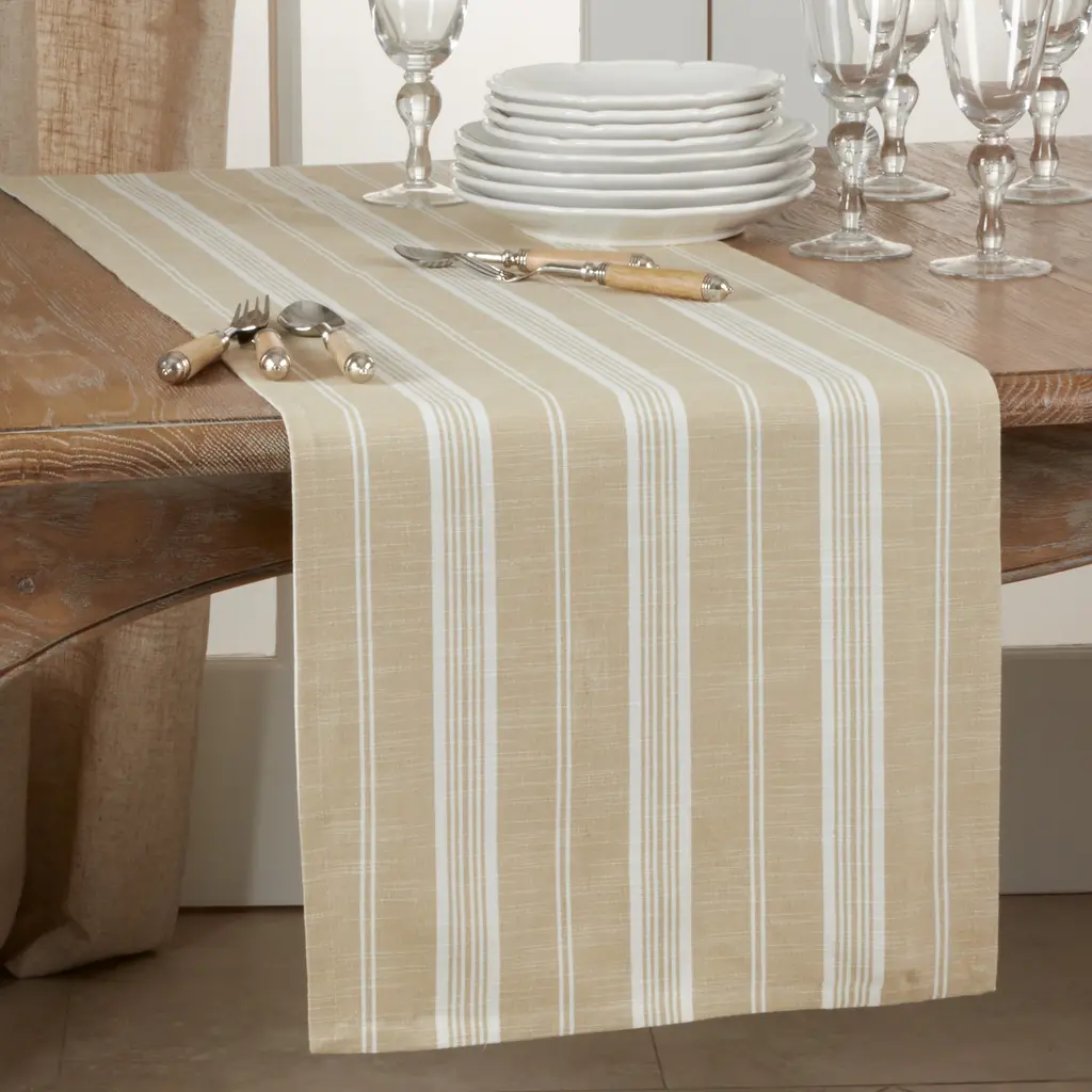 Coordinate all of your table decorations while protecting your tabletop with this table runner. Patterned with versatile stripes, this tabletop offers a timeless design that pairs well with other decor pieces and table place settings. This long table runner features 100 percent cotton material, making it soft and lasting, and it's machine washable for simple upkeep. Multiple color options let you align the look of this runner with your other kitchen or dining room decor. The unlined design keeps this runner lightweight and easy to position.Features:Material: 100 percent cottonProduct care: cool machine wash, delicate cycle, do not bleach, tumble dry low, medium ironDesign is not reversibleRunner has no liningCotton is soft and durable for daily use and regular laundering