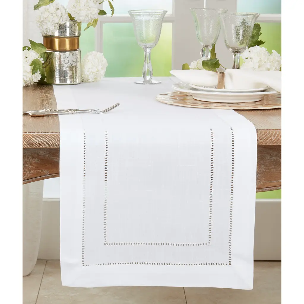 Craft 120" Crisp White Organic Cotton Fringe Table Runner